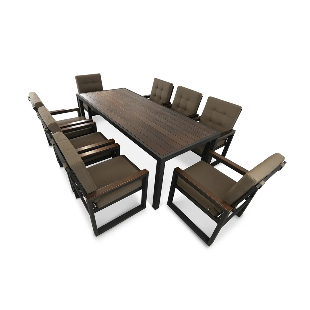Комплект КВАДРО — пространство для больших праздников. Восемь удобных кресел и стол, объединяющий гостей, создают атмосферу современного гостеприимства. Каждая деталь продумана для максимального комфорта и эстетики.