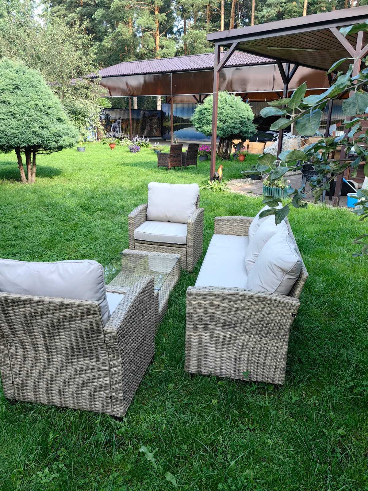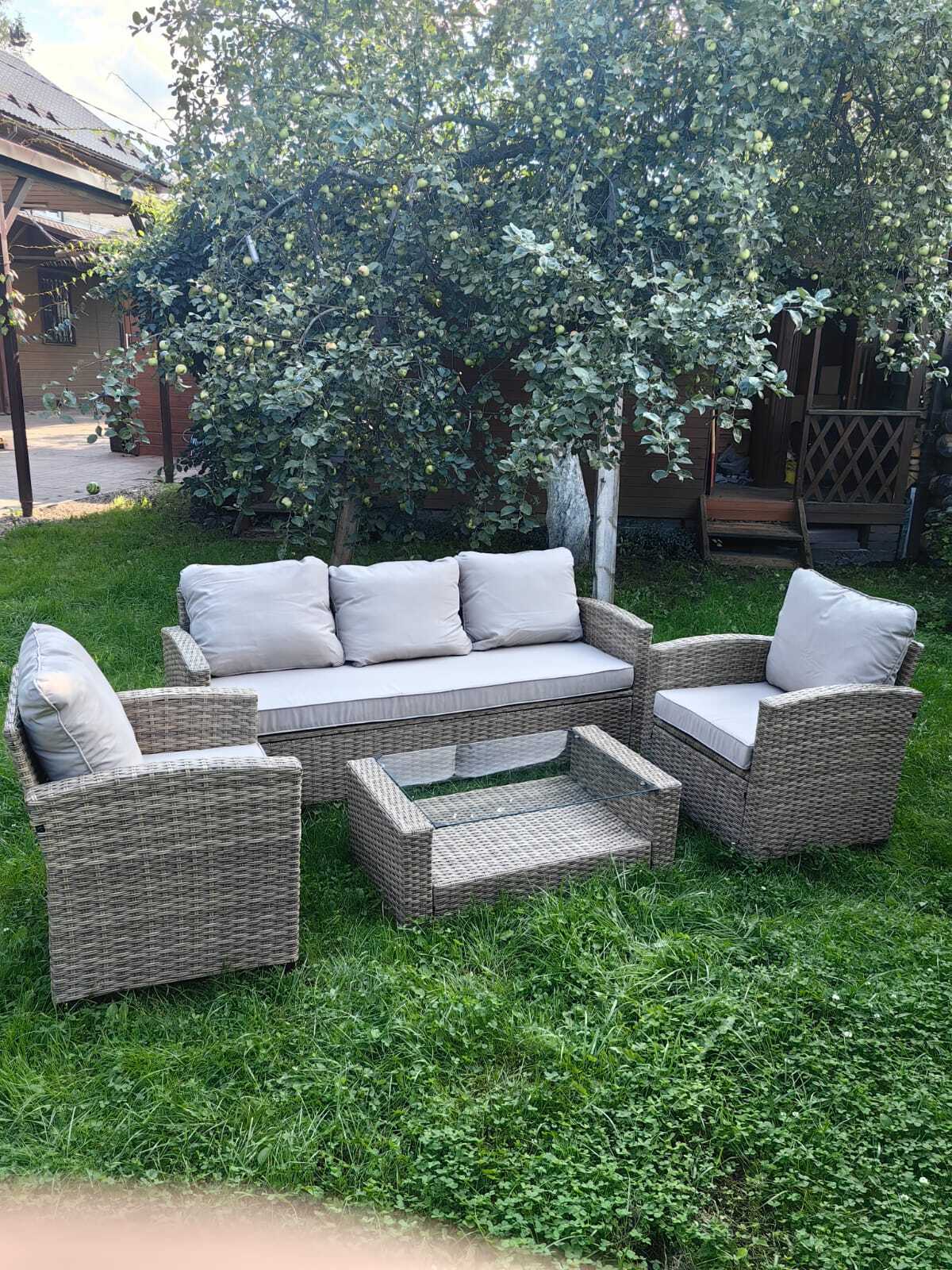 Комплект Сантьяго Terrace Set включает в себя: Два кресла, стол и диван. Подушки для кресел .