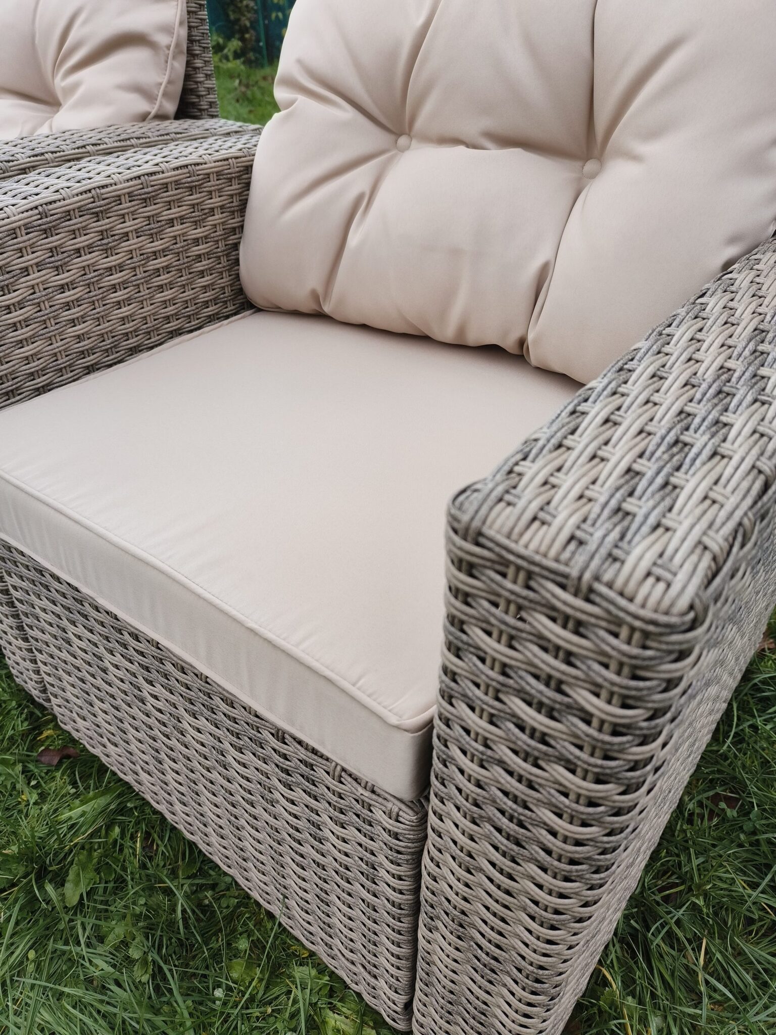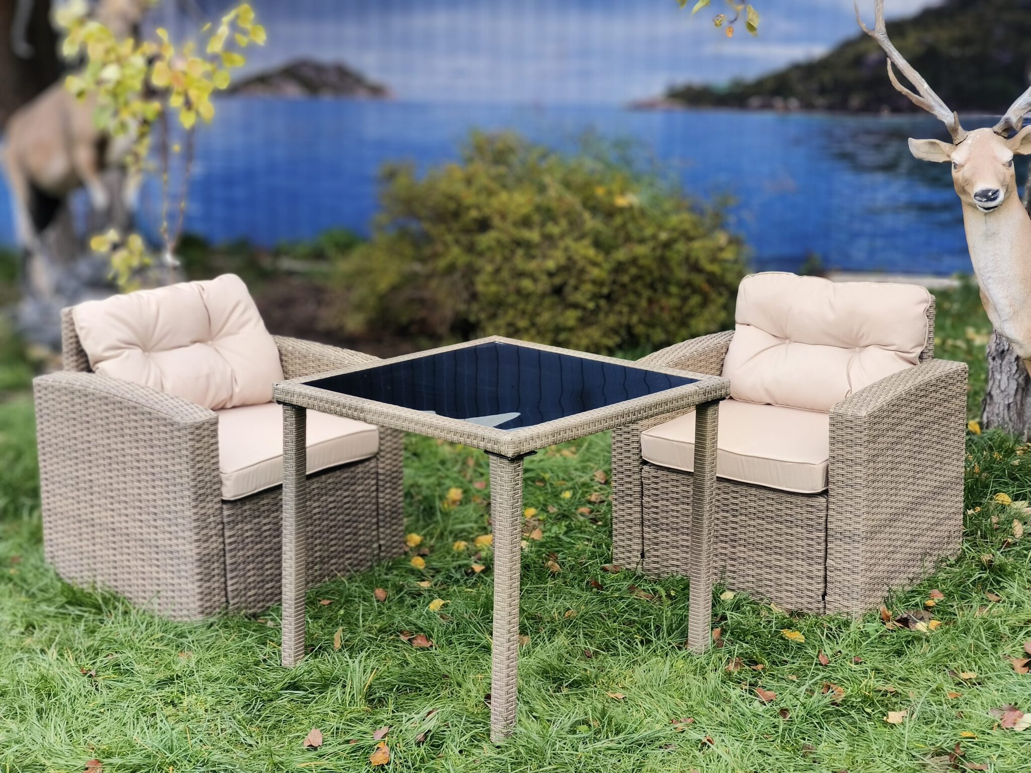 Комплект мебели из искусственного ротанга "Анталия" с двумя креслами "Сантьяго" в оттенке greige —станет прекрасным дополнением для террасы, сада или даже балкона, создавая уютную атмосферу для отдыха и общения.
