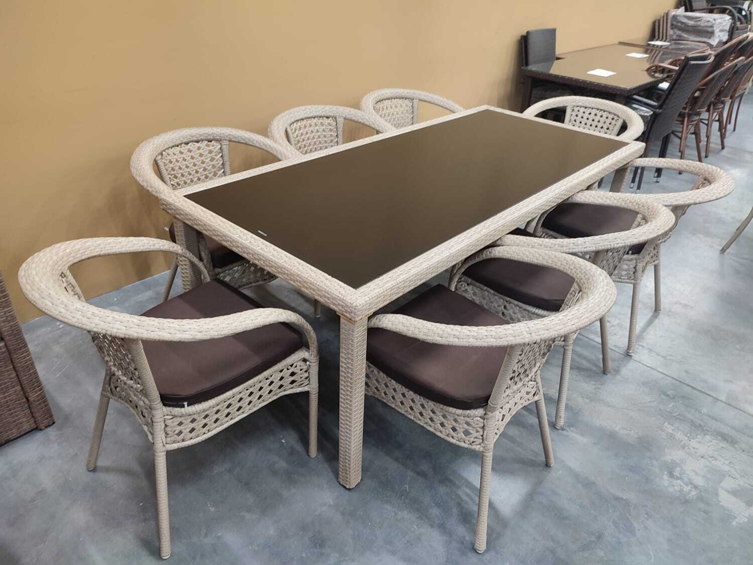 Этот комплект мебели включает в себя стол ишесть кресел, выполненные из искусственного ротанга. Стильный и удобный, он идеально подходит для использования как внутри помещения, так и на открытом воздухе. Характеристики: Стол Рио: Материал: Искусственный ротанг Размеры: 102 см x 70 см x 73 см Идеально подходит для ужинов на свежем воздухе или вечерних посиделок Кресла Греция (6 шт.): Материал: Искусственный ротанг Размеры: 77 см x 57 см x 70 см (высота) Удобные и стильные, с мягкими подушками для дополнительного комфорта Почему стоит выбрать этот комплект: Высококачественные материалы: Изготовлен из прочного и долговечного искусственного ротанга, который легко чистится и не требует особого ухода. Эстетика и стиль: Элегантный цвет и современный дизайн делают этот комплект идеальным дополнением к любому интерьеру или ландшафту. Комфорт: Кресла оснащены мягкими подушками, обеспечивающими комфортное сидение даже на протяжении длительных периодов времени. Не упустите возможность добавить стиль и уют в ваш дом или сад с этим прекрасным комплектом мебели из искусственного ротанга