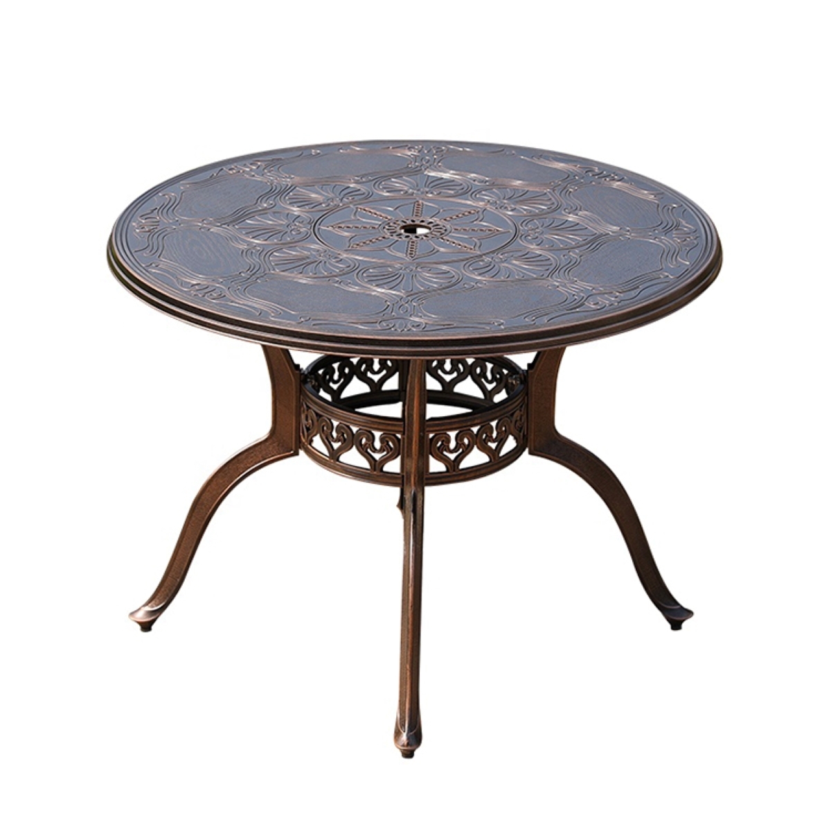 Изящный круглый стол с красивым орнаментом на 4 персоны из литого алюминия.