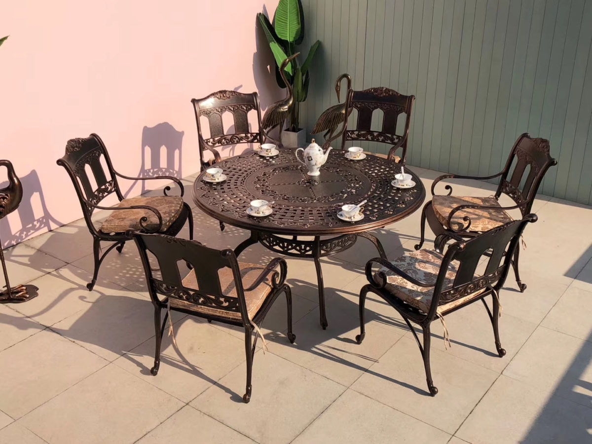 Невероятно красивая садовая мебель из литого алюминия с круглым столом на 6 персон будет отлично смотреться в Вашем загородном доме. Большой и вместительный стол. Набор состоит из круглого стола 150 см и 6 кресел.