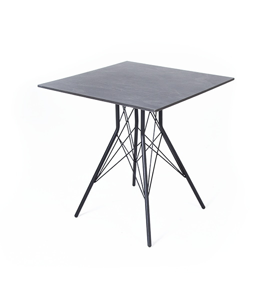 Каркас изготовлен из стали, окрашенной в матовый черный цвет. В качестве столешницы использован высококачественный монолитный компакт-пластика HPL, толщиной 12 мм. Цвет поверхности – «серый гранит».