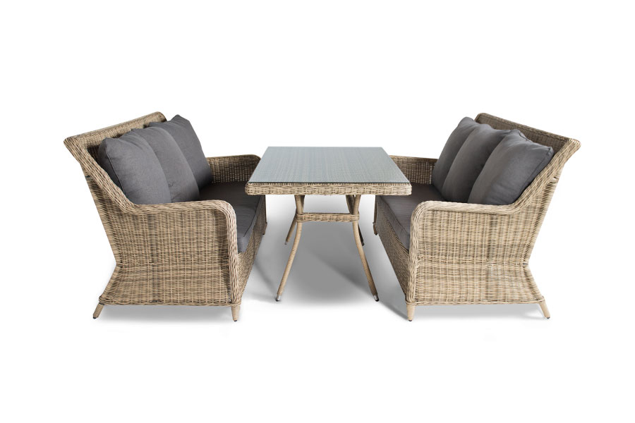 Для создания каркаса мебели используется алюминий. Каркас плотно оплетается вручную круглым искусственным ротангом. Цвет набора – натуральный соломенный. "Латте" плетеный стол из искусственного ротанга 160х90см, цвет соломенный 1шт. 1 600Х900Х750, "Гляссе" диван трехместный из искусственного ротанга, цвет соломенный 2шт. 1 900Х880Х990,