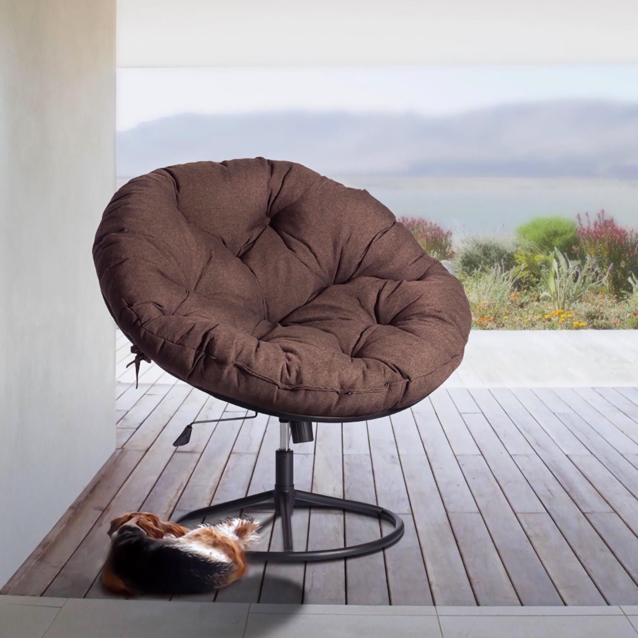Кресло CLOUD HOME из коллекции УЮТНЫЙ ДОМ – оригинальное решение для создания стильного, современного интерьера в вашем пространстве. Привлекательная модель будет прекрасно смотреться не только на веранде или террасе загородного дома, но также в гостиной, столовой или студии. Надежный металлический каркас, газлифт 3 класса, устойчивая крестовина, комфортное сиденье, современный дизайн – кресло придется по душе даже самым требовательным владельцам. Модель вращается в любом направлении, регулируется по высоте специальным рычагом и оснащена механизмом качания. В комплект входит небольшая подушка сиденья для лучшего комфорта, которая крепится к каркасу, и мягкое вместительное сиденье. Такое сочетание позволяет расположиться максимально удобно и расслабиться после напряженного дня. Подушки коричневого цвета, изготовлены из современной, модной ткани рогожка, она устойчива к износу и загрязнениям, не деформируется при активном использовании, не требуют специального ухода. Элегантное кресло из коллекции УЮТНЫЙ ДОМ практично и функционально, удивит вас своей долговечностью и надежностью, станет ярким и необычным акцентом в вашем доме, добавляющим выразительность, уют и индивидуальность интерьеру. Максимальная нагрузка 120 кг.