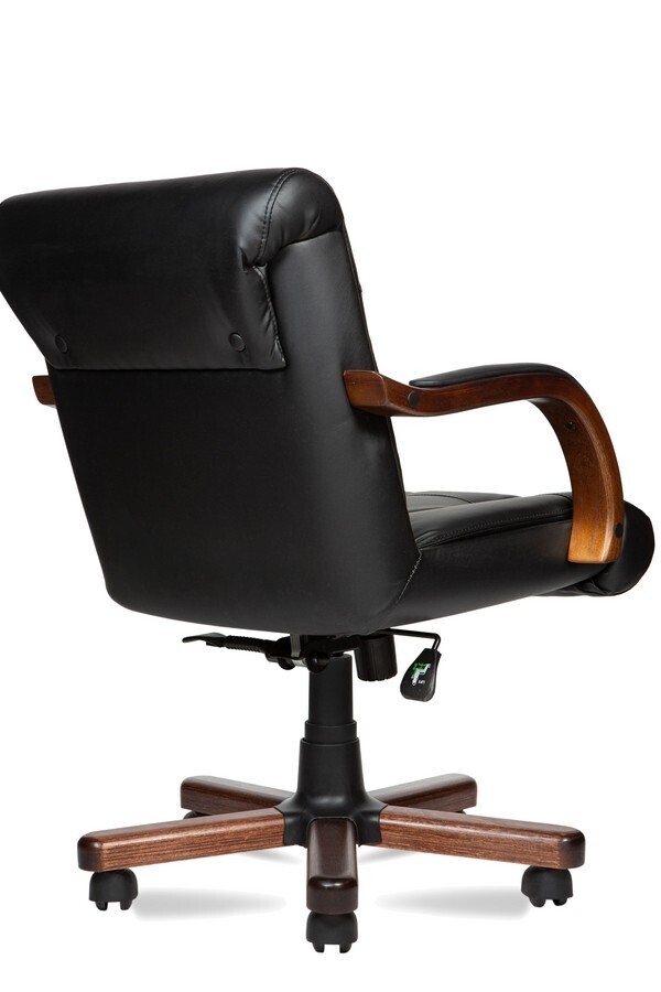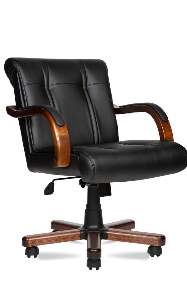 Особое внимание уделено деталям: деревянные подлокотники с мягкими накладками не только подчёркивают благородство стиля, но и обеспечивают максимальный комфорт при длительной работе. Дополняют общий образ деревянные вставки на крестовине, придающие креслу уникальный, солидный вид.