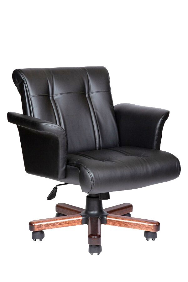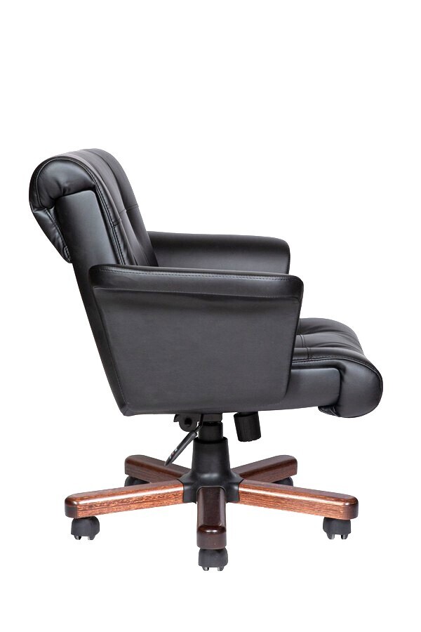 Особое внимание уделено деталям: мягкие подлокотники не только подчёркивают благородство стиля, но и обеспечивают максимальный комфорт при длительной работе. Дополняют общий образ деревянные вставки на крестовине, придающие креслу уникальный, солидный вид.
