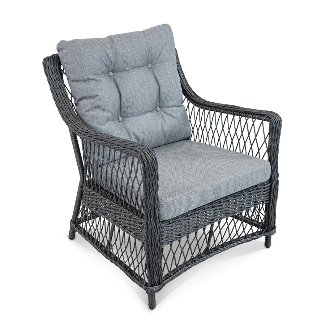 Кресло ИМПЕРО сочетает элегантный силуэт, комфорт и надёжность. Высокая спинка обеспечивает эргономичную поддержку, а прочный алюминиевый каркас, скрытый под аккуратным плетением из искусственного ротанга, гарантирует долговечность и устойчивость к нагрузкам до 120 кг. Идеальный выбор для обустройства лаунж-зон на террасе, в саду или на веранде.