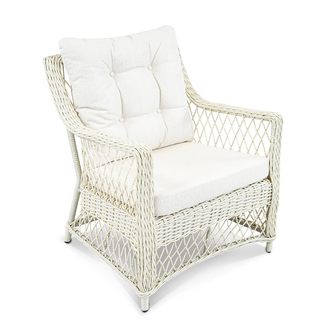 Кресло ИМПЕРО сочетает элегантный силуэт, комфорт и надёжность. Высокая спинка обеспечивает эргономичную поддержку, а прочный алюминиевый каркас, скрытый под аккуратным плетением из искусственного ротанга, гарантирует долговечность и устойчивость к нагрузкам до 120 кг. Идеальный выбор для обустройства лаунж-зон на террасе, в саду или на веранде.