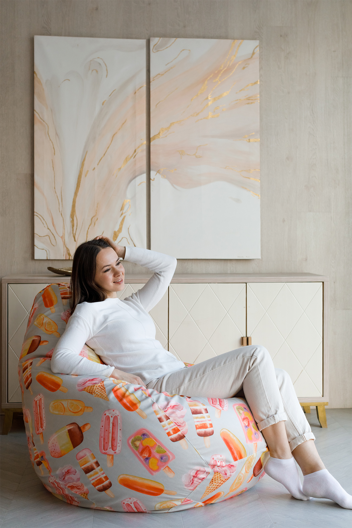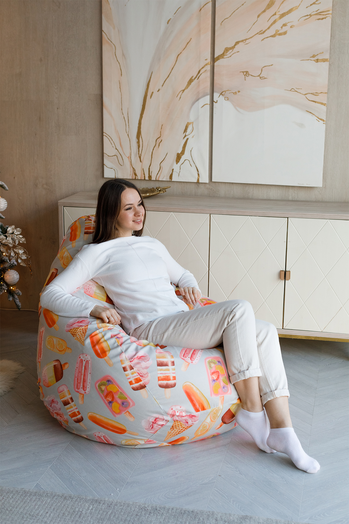 Кресло-мешок из велюра – одна из самых популярных моделей фабрики Дримбэг. Размеры кресел (по чехлу): XL (100*70 см) - для детей до 130 см. 2XL (115*80 см) - для детей и подростков до 150 см. 3XL (125*85 см) - для детей, подростков и взрослых до 170 см. 4XL (135*95 см) - идеально подходит для взрослых до 190 см. 5XL (150*110 см) - максимальный уровень комфорта, подходит для любого возраста и роста. Кресло-мешок состоит из двух чехлов. Внешний чехол на молнии, можно снять и постирать в стиральной машине в режиме деликатной стирки. Ткань - Велюр. Материал мягкий и приятный на ощупь, не выцветает, устойчив к истиранию, выдерживает большое количество стирок. Материал не требует частой стирки, загрязнения легко удаляются влажной салфеткой. Подходит для отдыха в квартире или на даче. Внутренний чехол сделан из нетканого материала, мы используем Спанбонд высокой плотности, который выдерживает большие нагрузки. Внутренний чехол наполнен гранулами пенополистирола. Наши гранулы, диаметром 1-3 мм, позволяют сохранять заявленный объем товара в несколько раз дольше, чем у производителей, использующих гранулы диаметром более 3 мм. На рынке бескаркасной мебели популярность крупных гранул объясняется их дешевизной, но, к сожалению, не гарантирует долгий срок службы изделия. Внешний и внутренний чехлы соединены друг с другом липучкой, благодаря чему не придется поправлять кресло после каждой посадки. Отверстия (люверсы) для отвода воздуха, исключают разрыв ткани при прыжке на кресло. Удобная ручка позволяет без труда переносить кресло даже детям. Швы надежно прошиты армированными нитями, благодаря чему кресло-груша выдерживает нагрузку до 150 кг. Молния на внутреннем чехле оснащена замком с защитой от случайного открывания. Кресло-мешок – это крутая и современная мебель для любой квартиры. Вы будете наслаждаться уютом каждый вечер перед телевизором или на балконе, а друзья оценят удобство, когда придут к вам в гости поиграть на приставке. Гарантия 12 месяцев распространяется на все наши изделия. Данная гарантия распространяется на внешний и внутренний чехол. На гранулы полистирола гарантия не распространяется, поскольку скорость усадки зависит от индивидуальных особенностей использования.