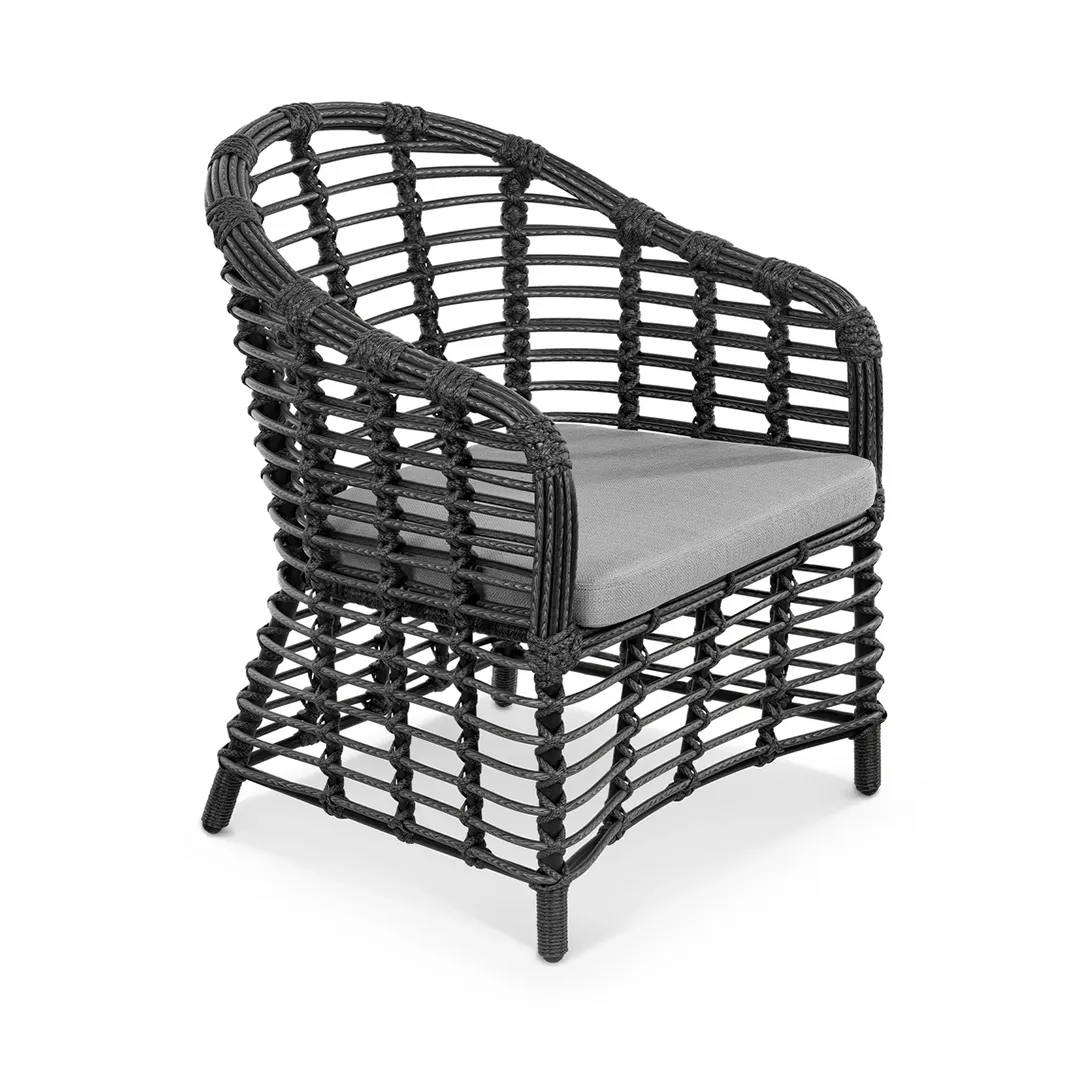 Кресло МИРО объединяет эстетику и комфорт. Ажурное плетение спинки создаёт выразительную игру света и тени, добавляя пространству лёгкость и характер. Прочный алюминиевый каркас и высококачественные материалы обеспечивают устойчивость к погодным условиям и длительный срок службы. Кресло гармонично впишется в интерьер террасы, патио или зоны отдыха, создавая атмосферу уюта и визуальной лёгкости.