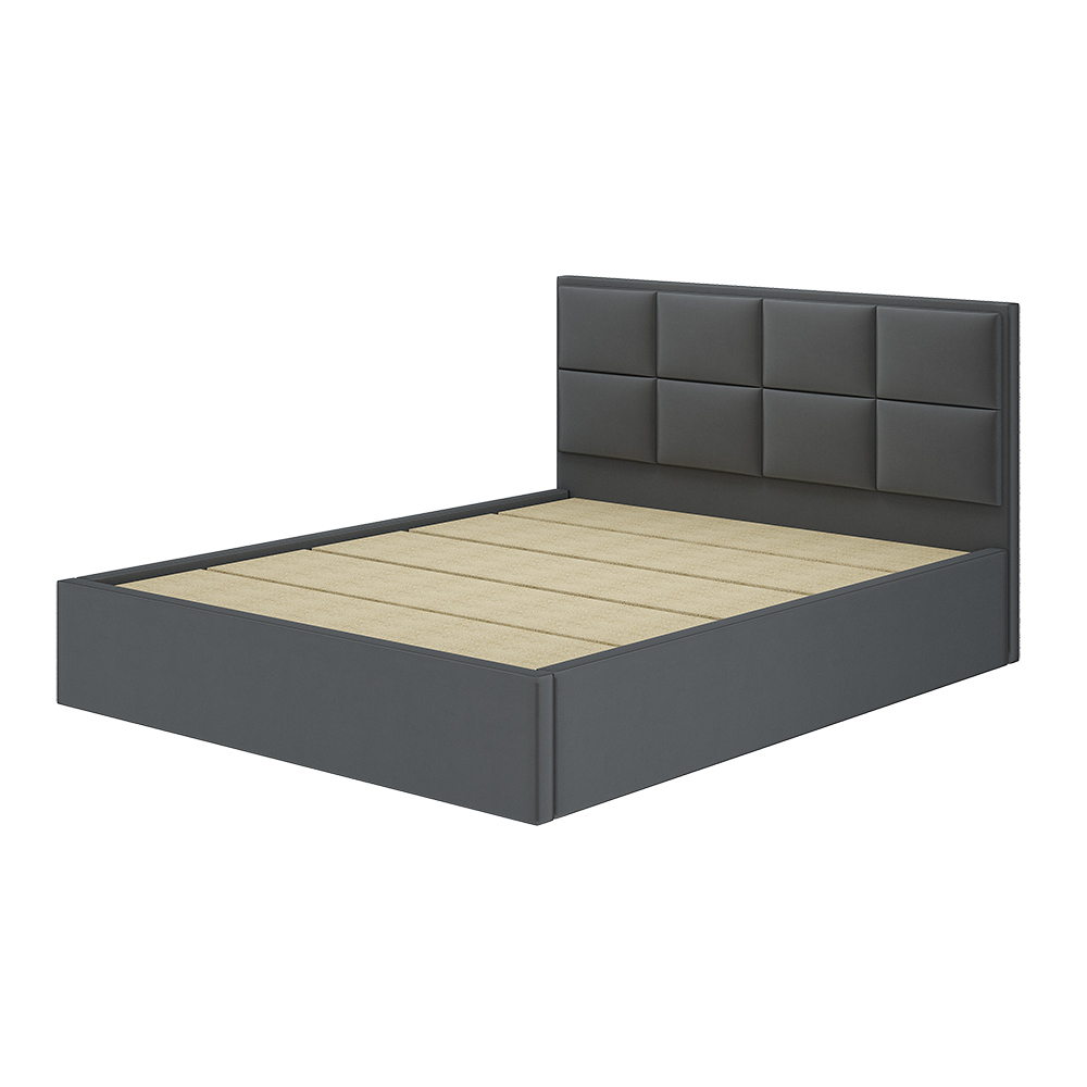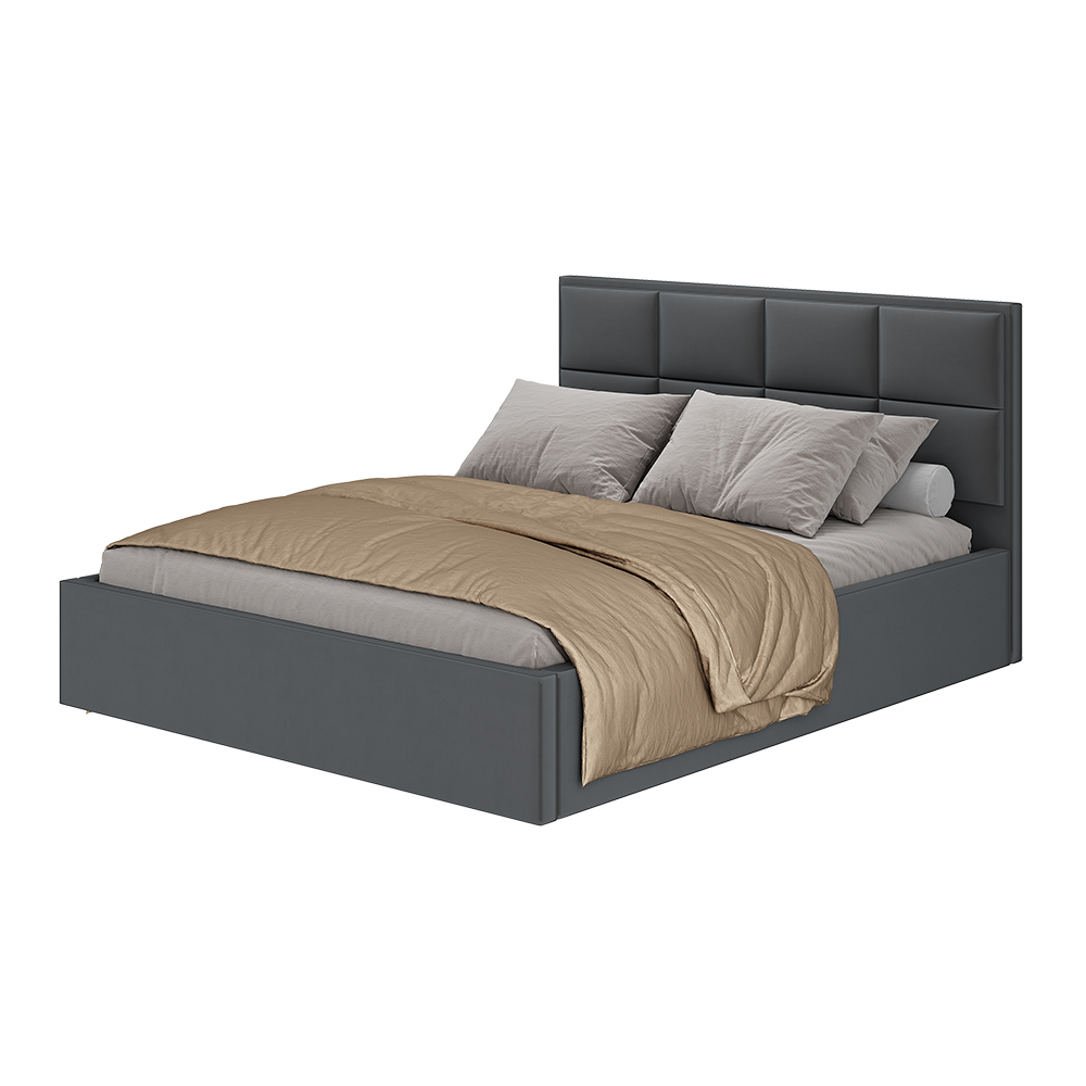 Изголовье кровать Линда привлекает внимание оригинальным исполнением: широкие прямоугольники обтянуты велюром эффектного цвета. Модель имеет спальное место размером 160х200 см, проложки ДСП и три ящика для хранения постельного белья, высокое мягкое изголовье, обтянутое велюром цвета графит.