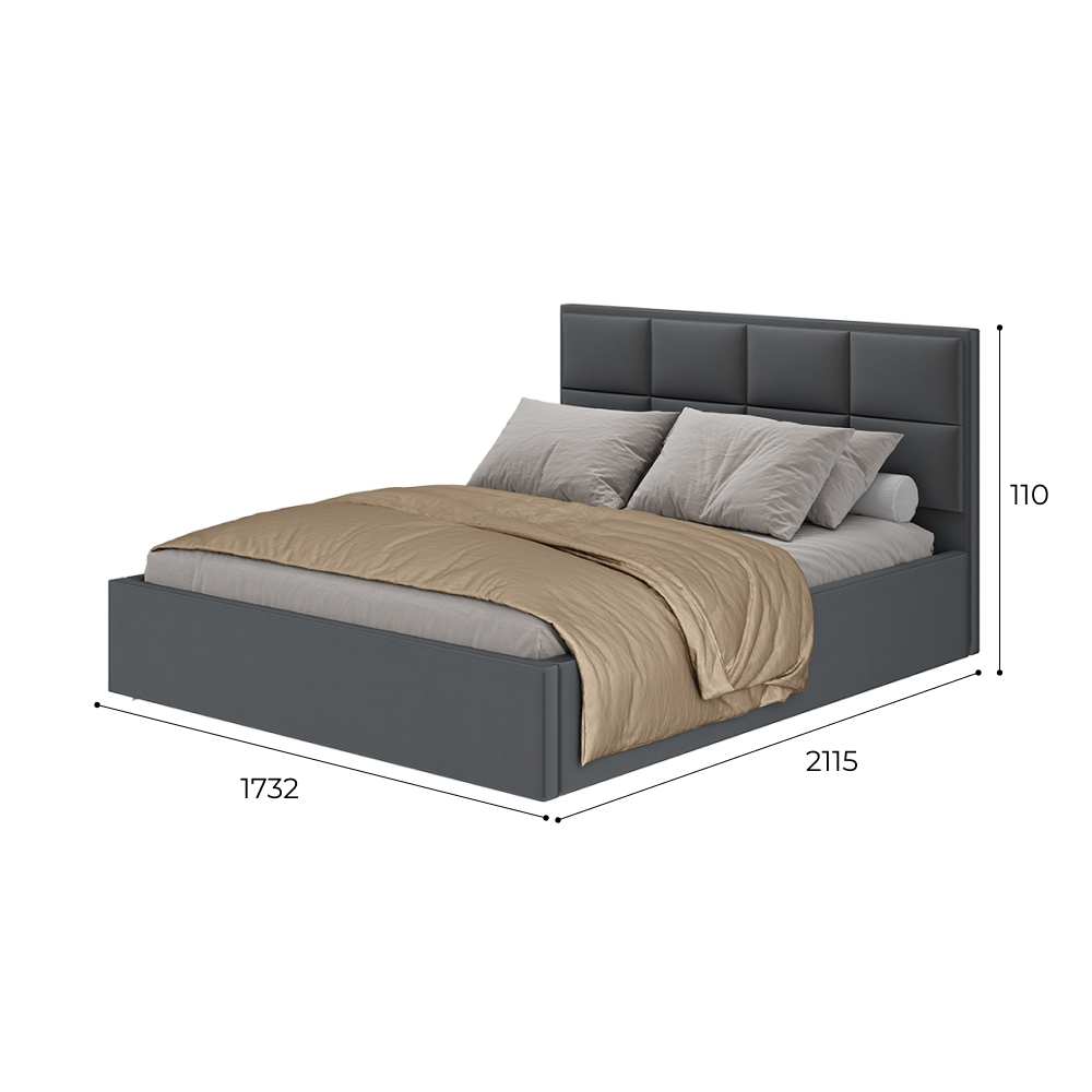 Изголовье кровать Линда привлекает внимание оригинальным исполнением: широкие прямоугольники обтянуты велюром эффектного цвета. Модель имеет спальное место размером 160х200 см с реечным настилом, три ящика для хранения постельного белья, высокое мягкое изголовье, обтянутое велюром цвета графит.