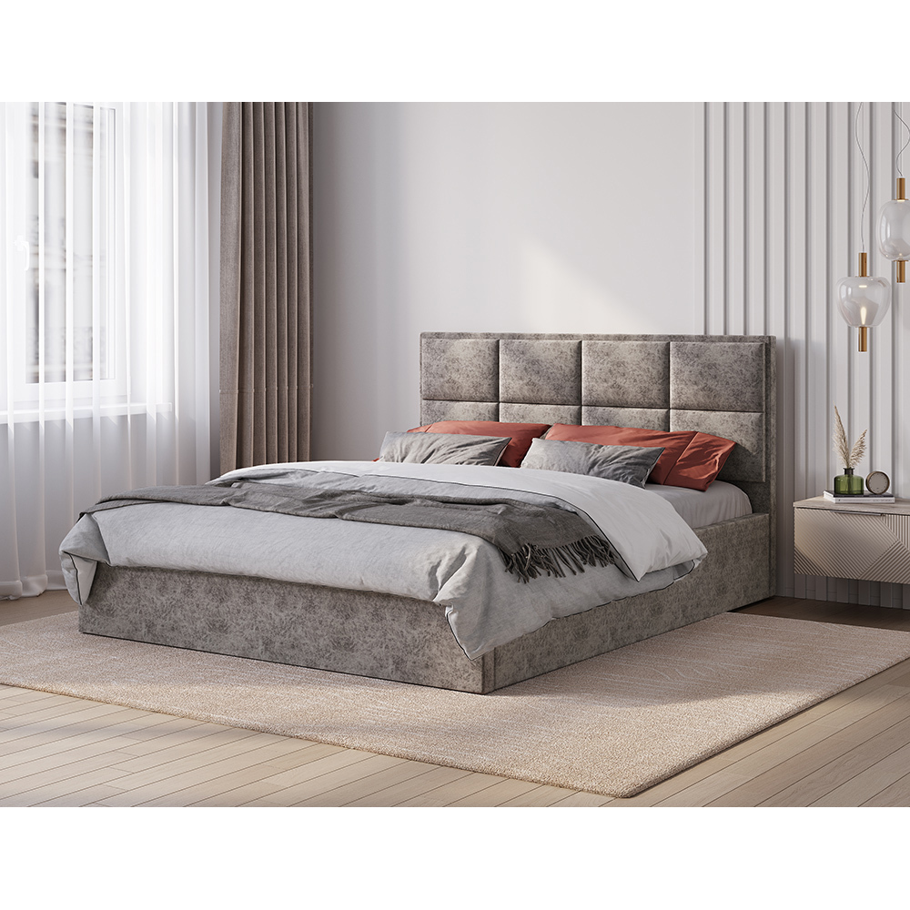 Изголовье кровать Линда привлекает внимание оригинальным исполнением: широкие прямоугольники обтянуты велюром эффектного цвета. Модель имеет спальное место размером 160х200 см с реечным настилом, три ящика для хранения постельного белья, высокое мягкое изголовье, обтянутое велюром приятного серого цвета.