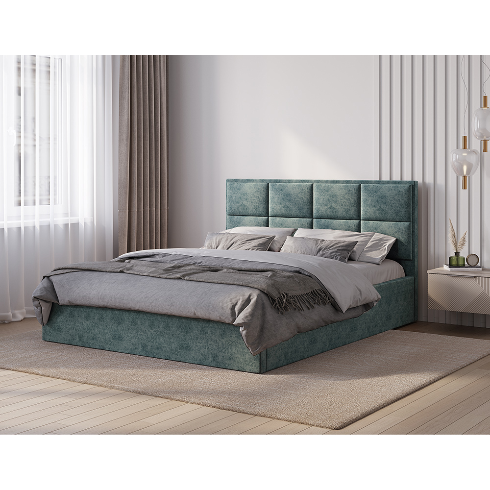 Изголовье кровать Линда привлекает внимание оригинальным исполнением: широкие прямоугольники обтянуты велюром эффектного цвета. Модель имеет спальное место размером 160х200 см с реечным настилом, три ящика для хранения постельного белья, высокое мягкое изголовье, обтянутое велюром приятного цвета морской волны.