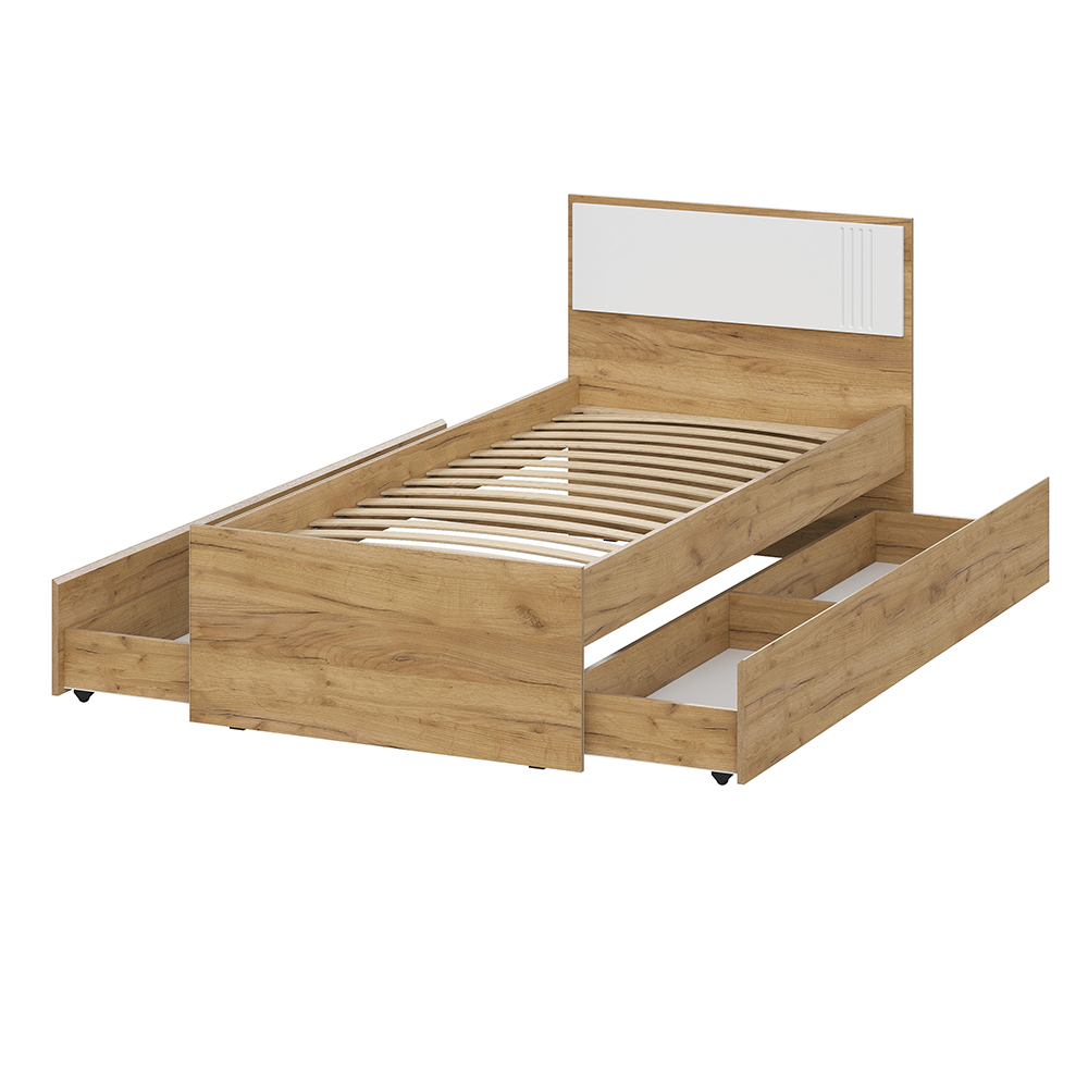 Односпальная кровать Милан привнесет яркий акцент в подростковую или детскую комнату. В выкатных ящиках можно разместить постельные принадлежности и игрушки.