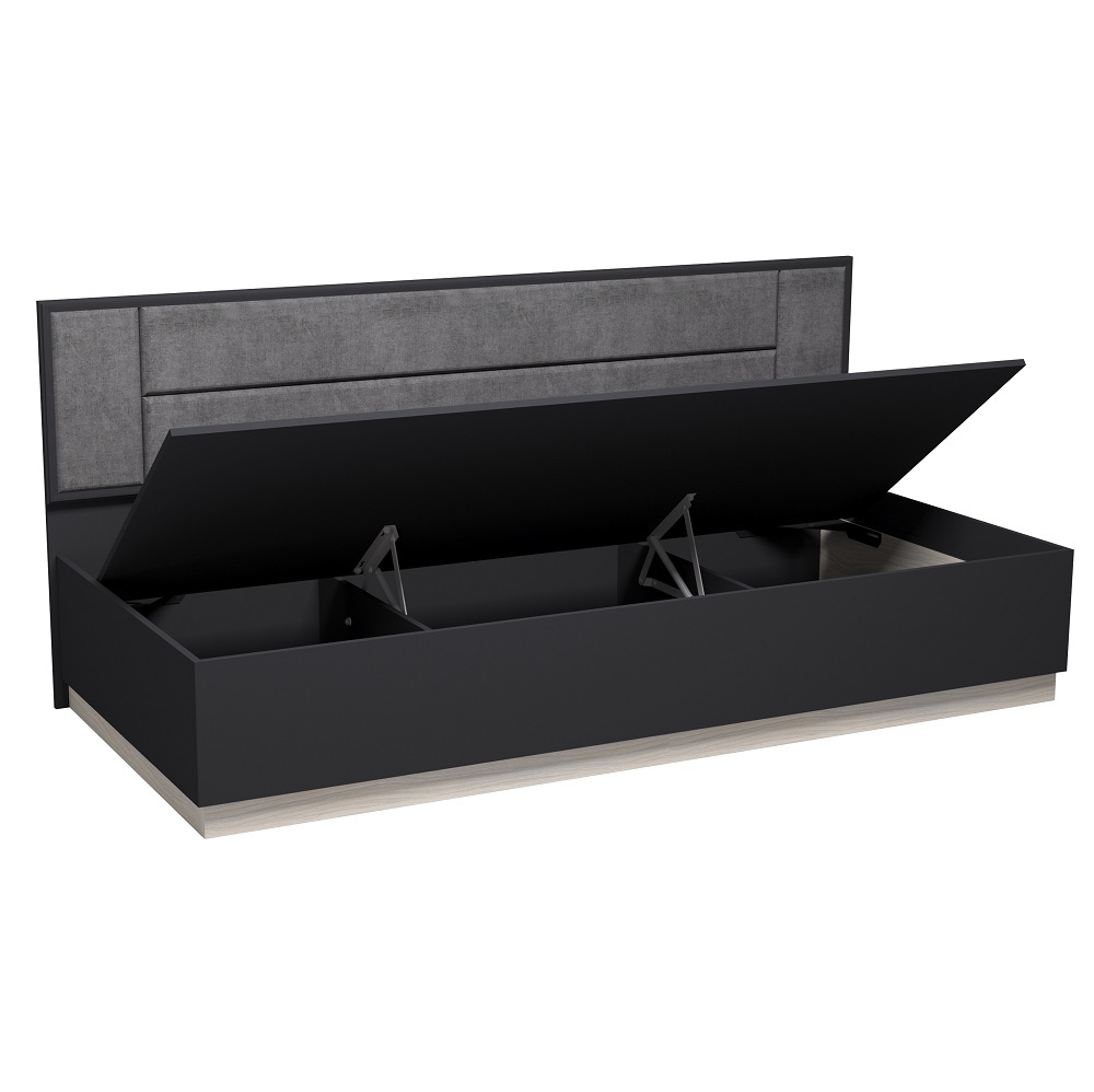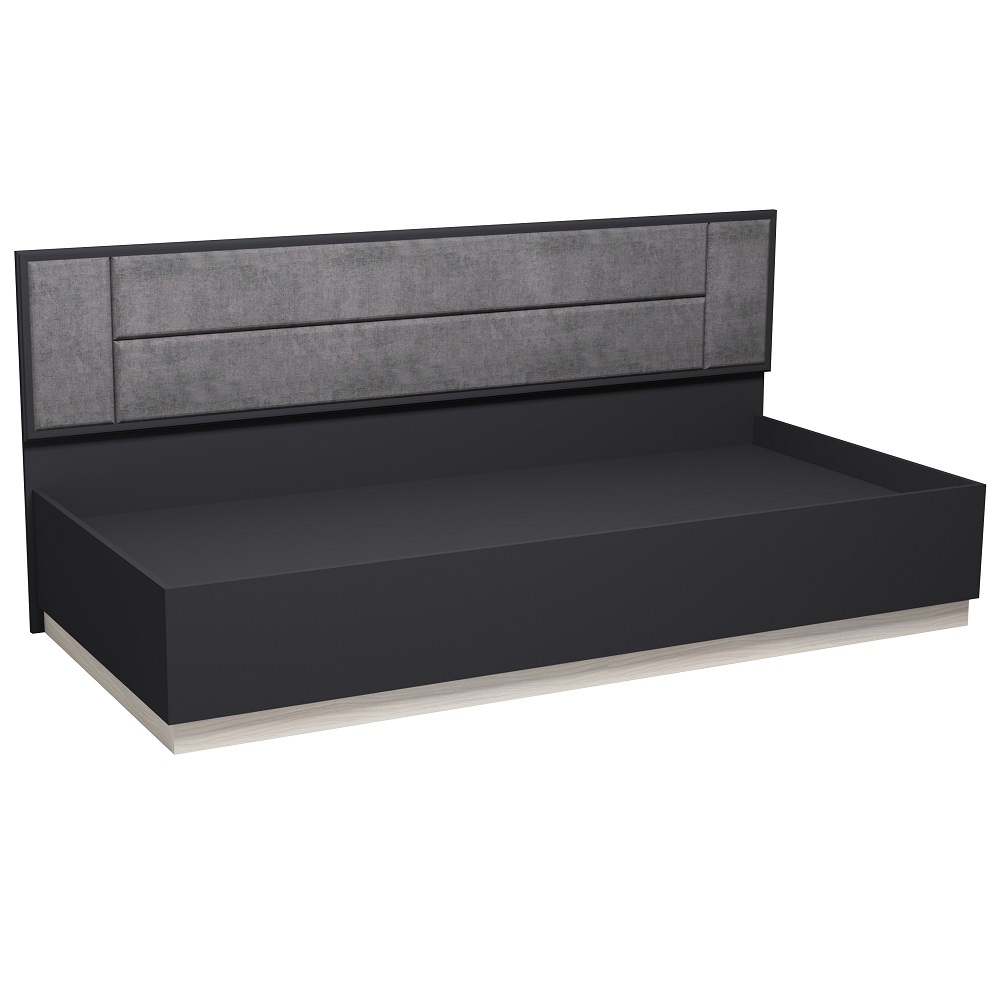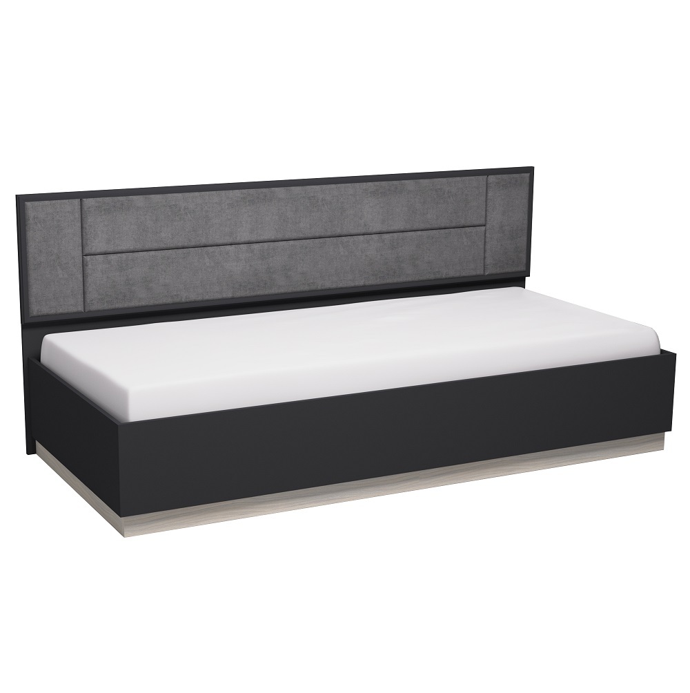 Молодёжная выполнена в одном стиле со всей коллекцией AURELIO. Фасады толщиной 10 мм из ЛДСП класса эмиссии Е1 обрамлены тонким фигурным профилем МДФ. Корпус выполнен из ЛДСП 16 мм. Задняя стенка шкафов в древесном декоре станавливается в паз и обеспечивает дополнительную устойчивость и аккуратный вид мебели. Мягкие подушечки кроватного изголовья укутаны в шелковистый на ощупь велюр благородного серого оттенка. Дополняет изголовье элегантный профиль. Подъемный механизм кровати открывает доступ к вместительному