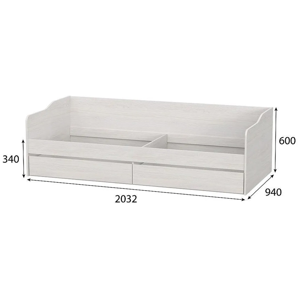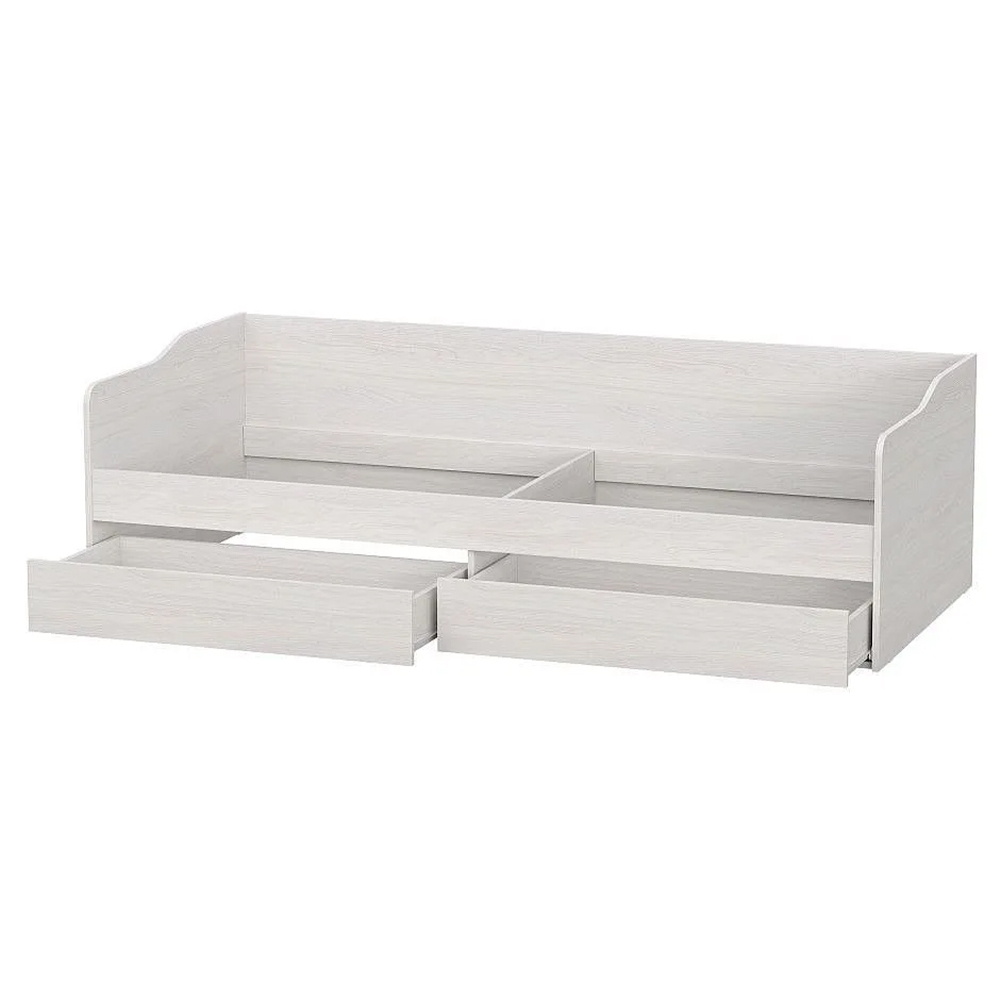 Надежная односпальная кровать из ЛДСП с ящиками. Выполнена в приятном древесном декоре "ясень анкор светлый". Два выкатных ящика подойдут для хранения постельного белья и личных вещей ребенка.