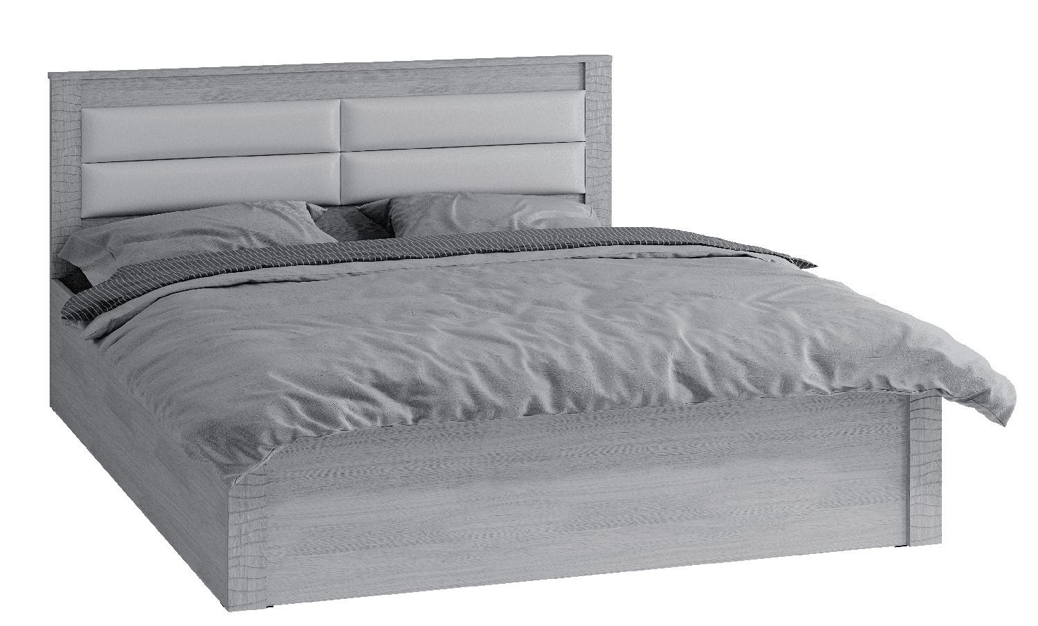 Двуспальная кровать с мягкой спинкой, обтянутой экокожей. Комплектуется проложками ДСП. Матрас приобретается отдельно.