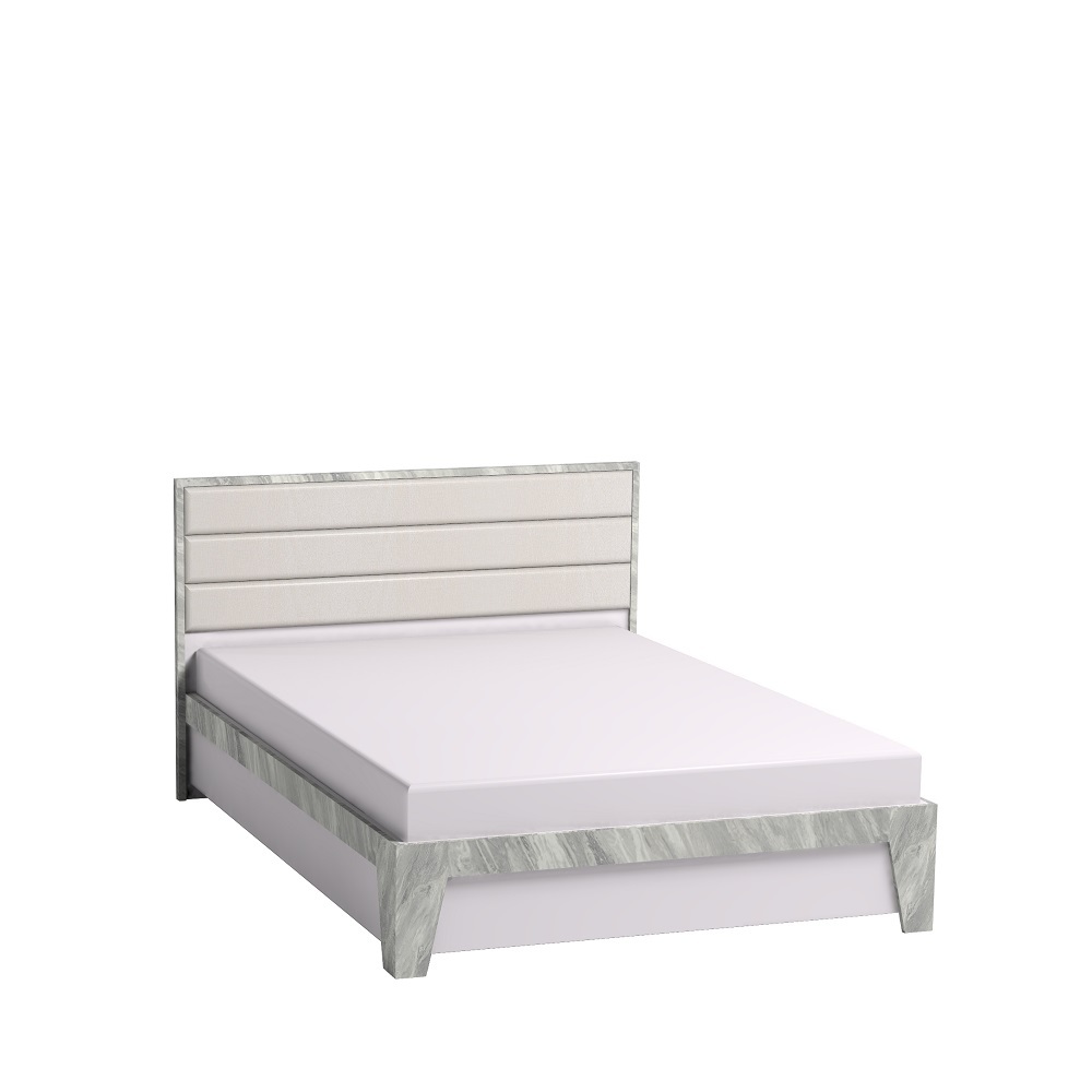 Ключевым элементом в Вашей современной спальне станет двуспальная кровать Айрис. Текстурные опоры и массивная рама на изголовье поддерживают направленность всей коллекции, выполненной в современном стиле. Мягкая спинка со стяжкой обтянута белой экокожей, которая не боится деформации и не требует специального ухода. Кровать комплектуется стационарным ортопедическим основанием, максимальная нагрузка на которое 440 кг с учетом веса матраса.
