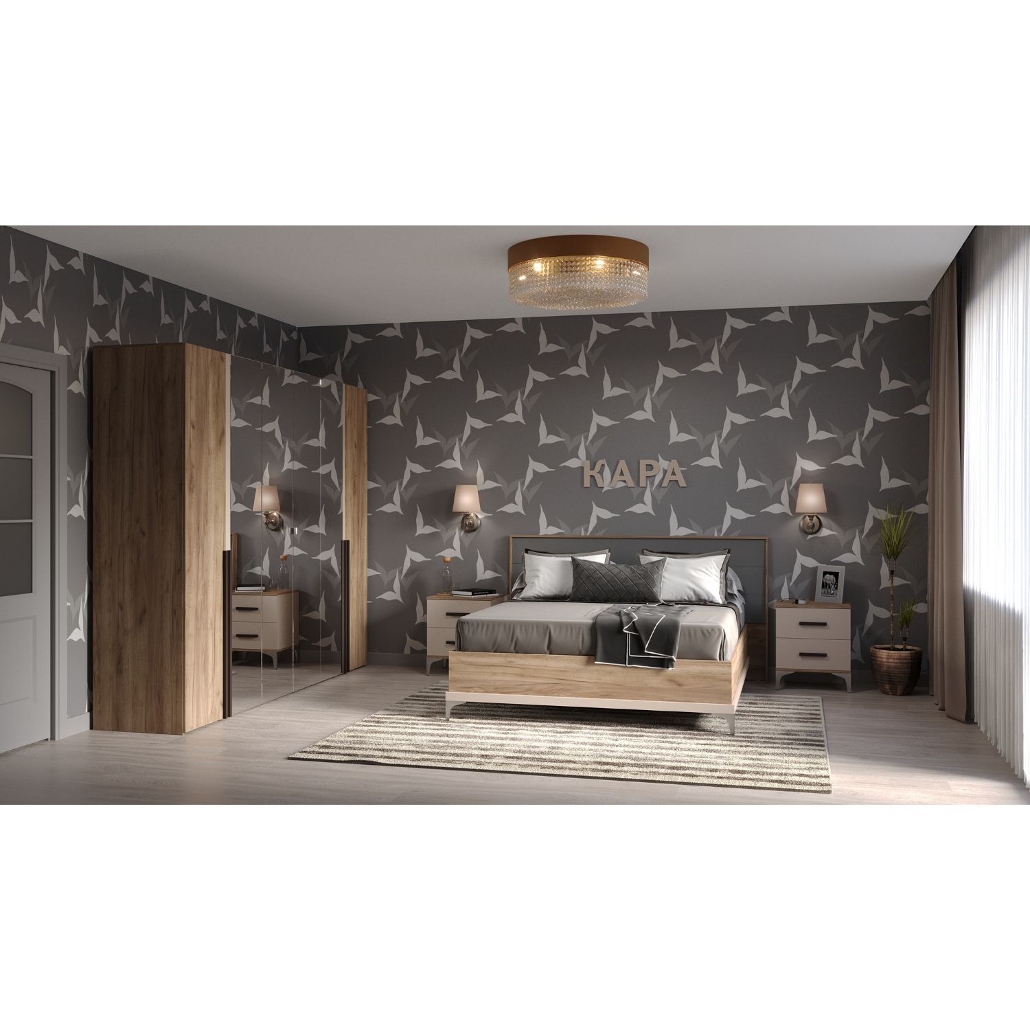 Двухспальная кровать шириной 160 см из коллекции Кара выглядит эффектно благодаря объёмному изголовью выразительной формы в обрамлении. Высокие точеные ножки подчеркивают направленность всей коллекции и удобны при уборке: позволяют роботу-пылесосу поддерживать порядок даже под кроватью.