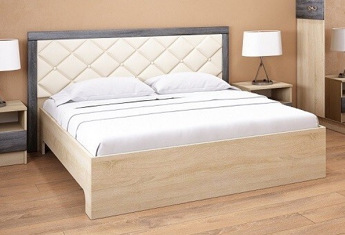Двуспальная кровать Мадлен140х200 см станет центральным элементом в Вашей спальне и подарит много часов комфортного сна и отдыха. Мягкое изголовье кровати с утяжкой в форме ромбов и декоративными пуговицами обтянуто эко-кожей цвета «крем». Комплектуется ортопедическим основанием на опорах.