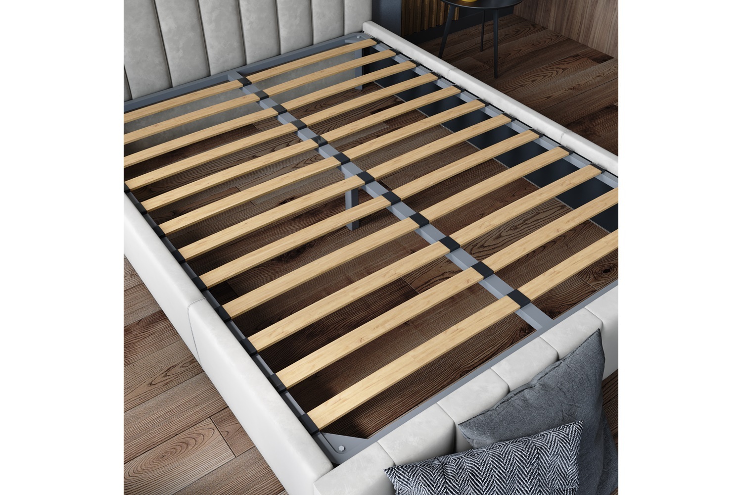 Кровать Нега с ортопедическим основанием — отличный выбор для тех, кто ценит комфорт и функциональность. Благодаря использованию сквозных усовых гаек, конструкция обладает высокой прочностью и возможностью многократной сборки. Установка производится на пластиковые угловые опоры высотой 23 мм.