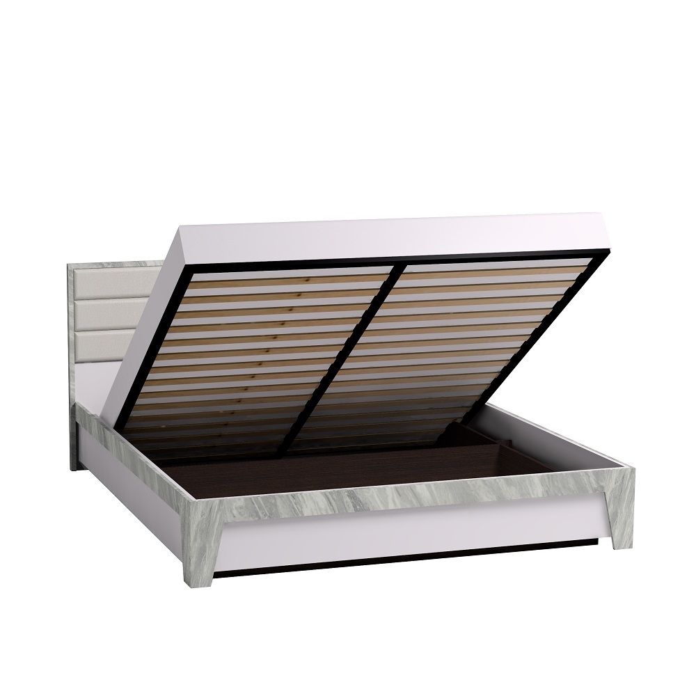 Ключевым элементом в Вашей современной спальне станет двуспальная кровать Айрис. Текстурные опоры и массивная рама на изголовье поддерживают направленность всей коллекции, выполненной в современном стиле. Мягкая спинка со стяжкой обтянута белой экокожей, которая не боится деформации и не требует специального ухода. Кровать комплектуется ортопедическим основанием с подъемным механизмом.