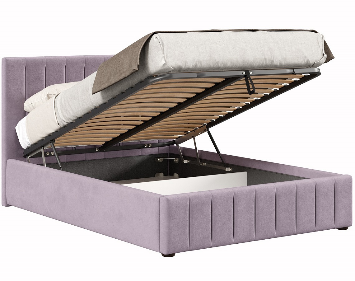 Двуспальная кровать с подъёмным механизмом «Верона» сочетает в себе эстетику сдержанной роскоши, индивидуальность и практичность. Мягкая обивка создаёт атмосферу уюта, а основание с ламелями обеспечивает комфортный сон. Особенностью этой модели является повторяющийся декор, который украшает спинку и изножье кровати. Вертикальные строчки подчёркивают симметрию и правильные линии кровати.