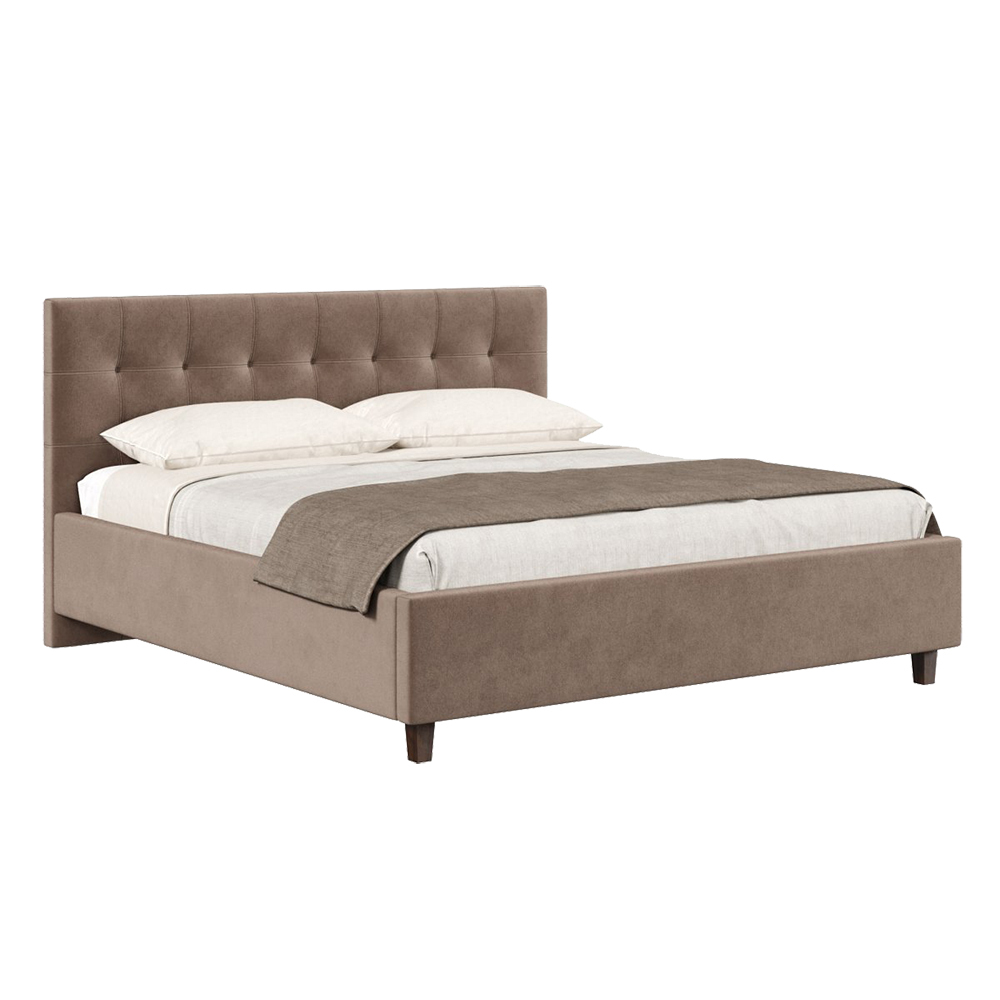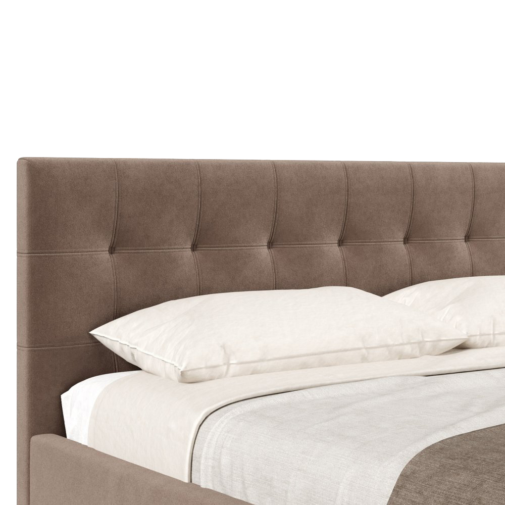 Изголовье и корпус кровати обтянуты велюром, приятным на ощупь и легко чистящимся.