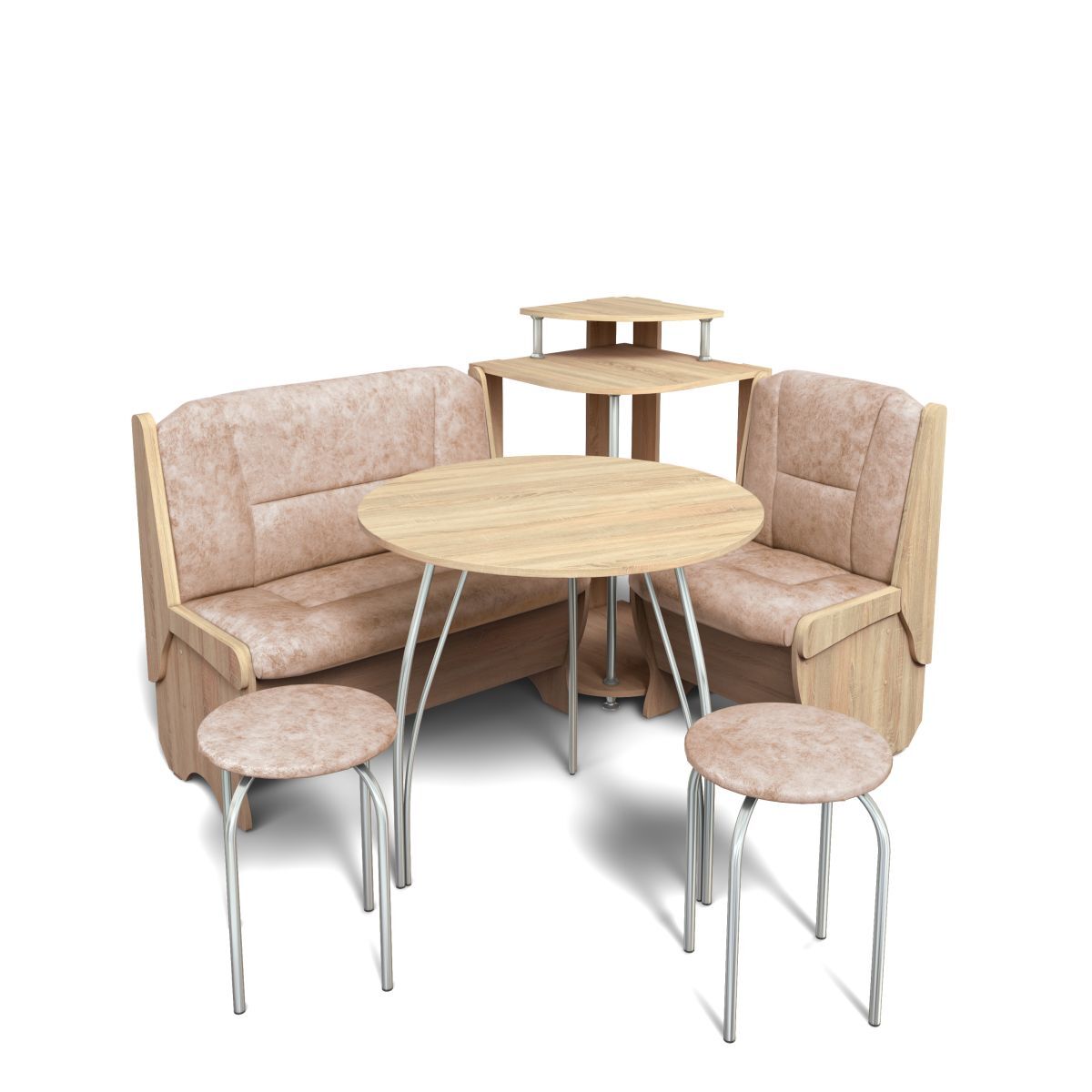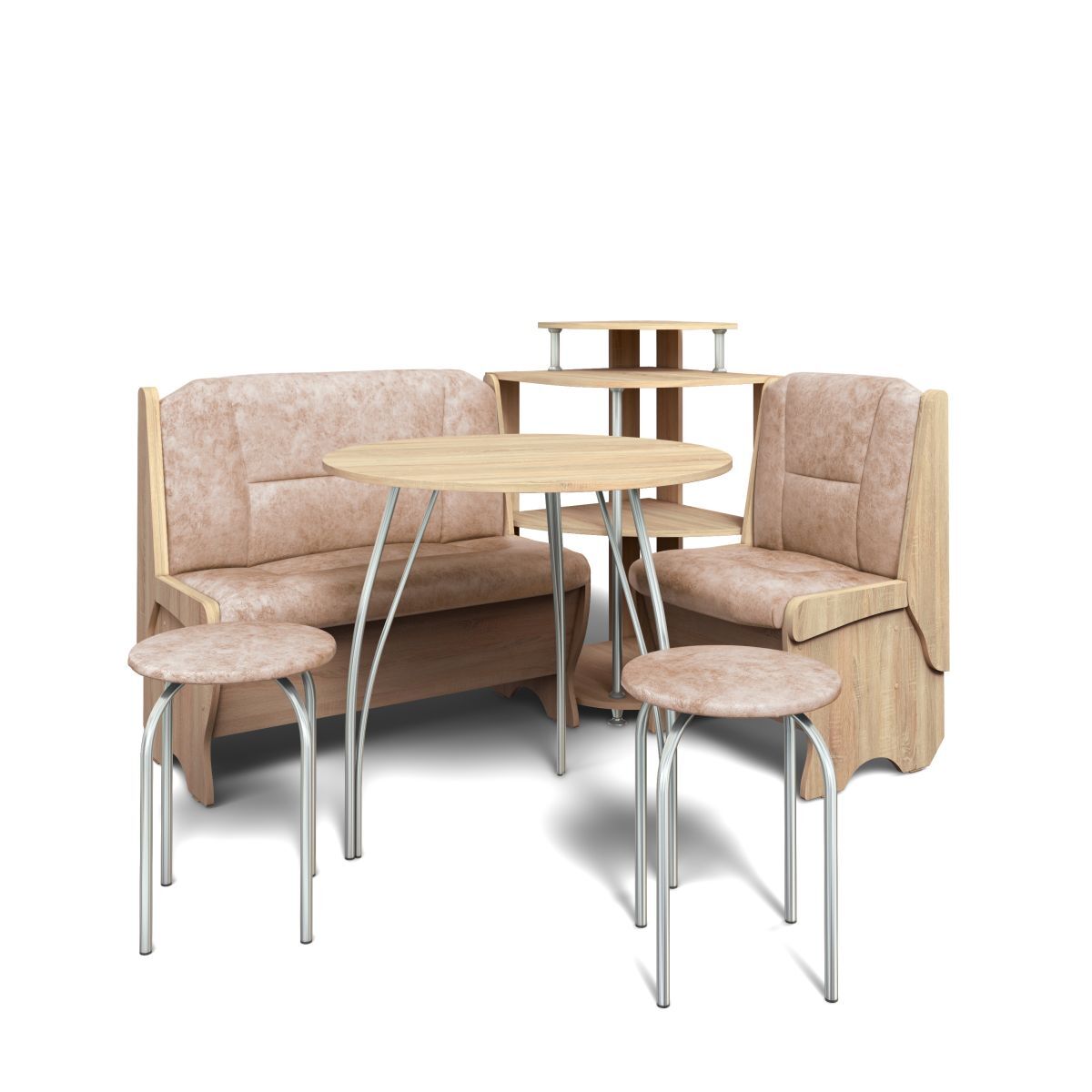 Набор включает уголок с мягкими сиденьями и спинками, стол и два табурета.