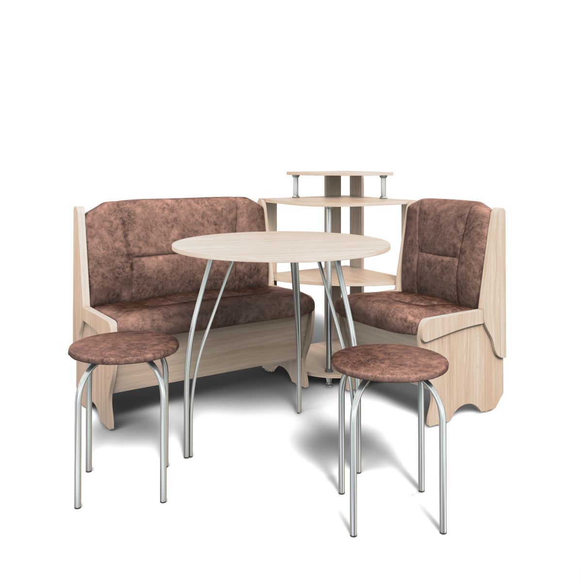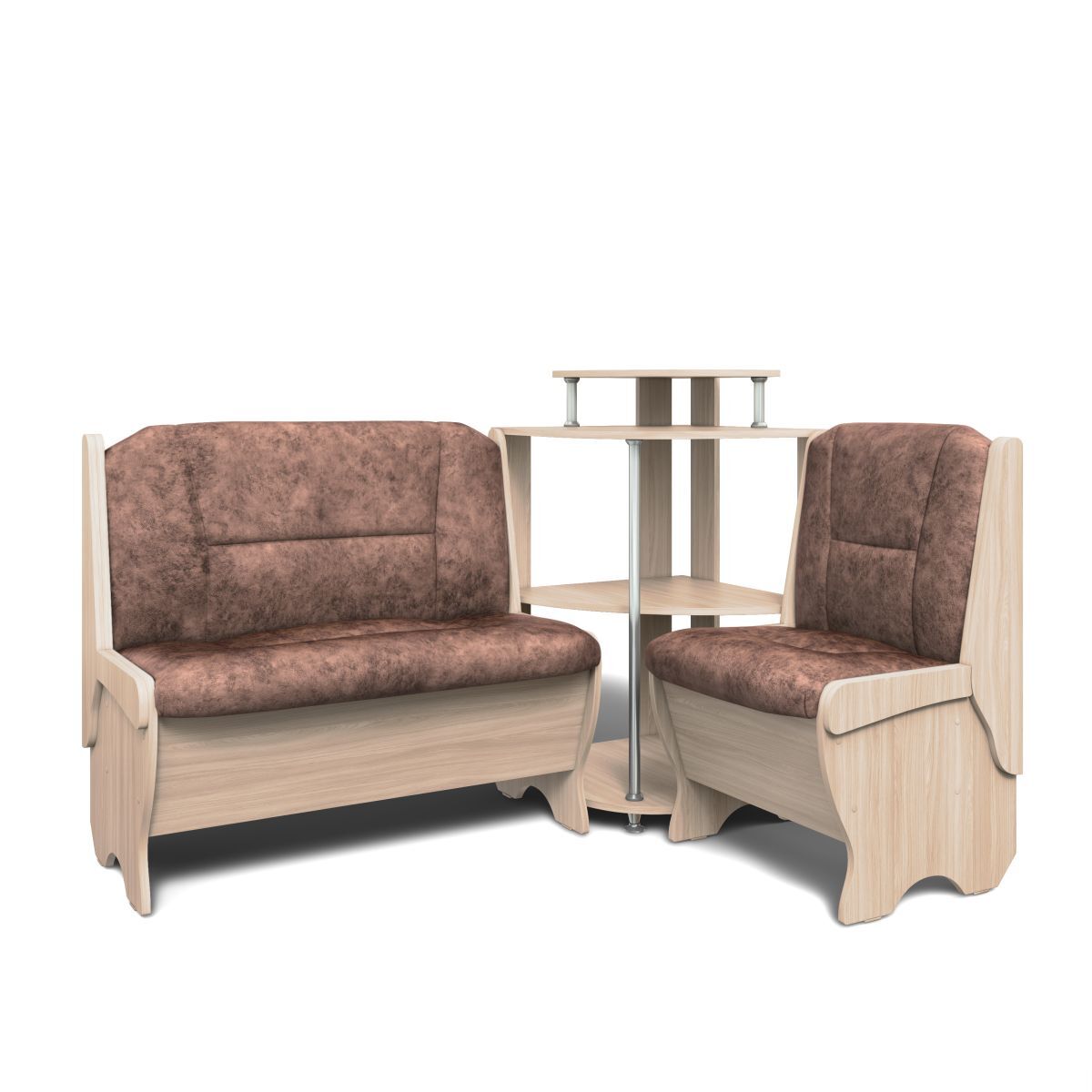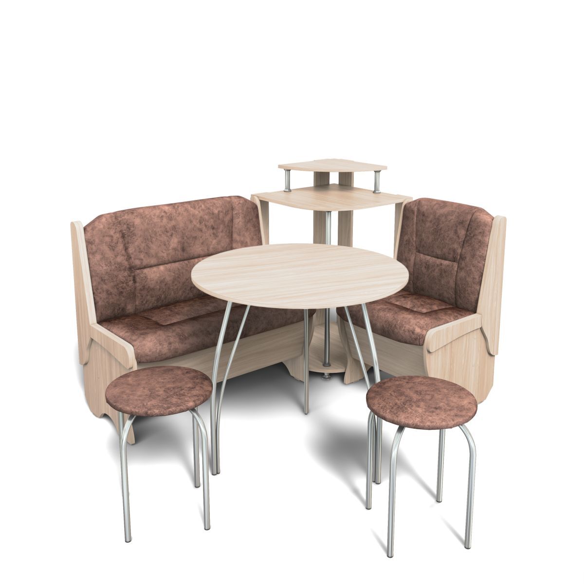 Набор включает уголок с мягкими сиденьями и спинками, стол и два табурета.