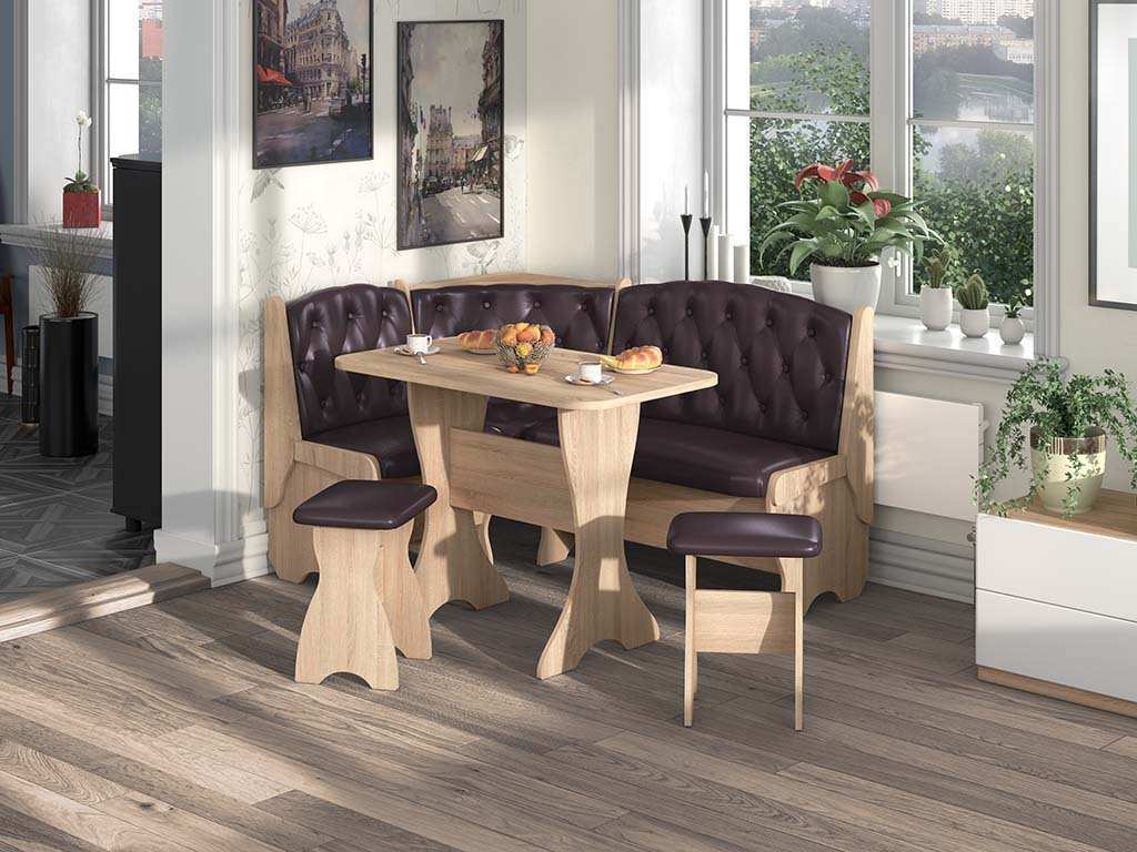Кухонный набор Орхидея Люкс комплектация: угловой диван, стол, 2 табурета. Замечательный кухонный набор Орхидея Люкс станет центром интерьера Вашей кухни. Набор отличается стильным и современным внешним видом и высоким качеством исполнения.