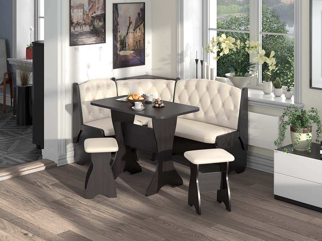 Кухонный набор Орхидея Люкс комплектация: угловой диван, стол, 2 табурета. Замечательный кухонный набор Орхидея Люкс станет центром интерьера Вашей кухни. Набор отличается стильным и современным внешним видом и высоким качеством исполнения.