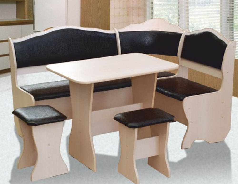 Классический уголок для кухни среднего размера. Под сиденьями ящики для хранения.
