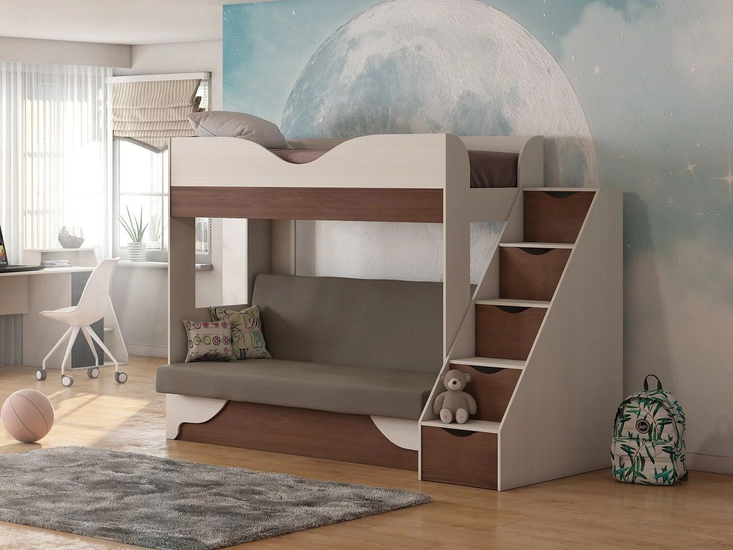 Латте 77-01 кровать-диван Бодега Светлый / Орех Донской / Велюр Коричневый - готовое решение для двух спальных мест в детской комнате.