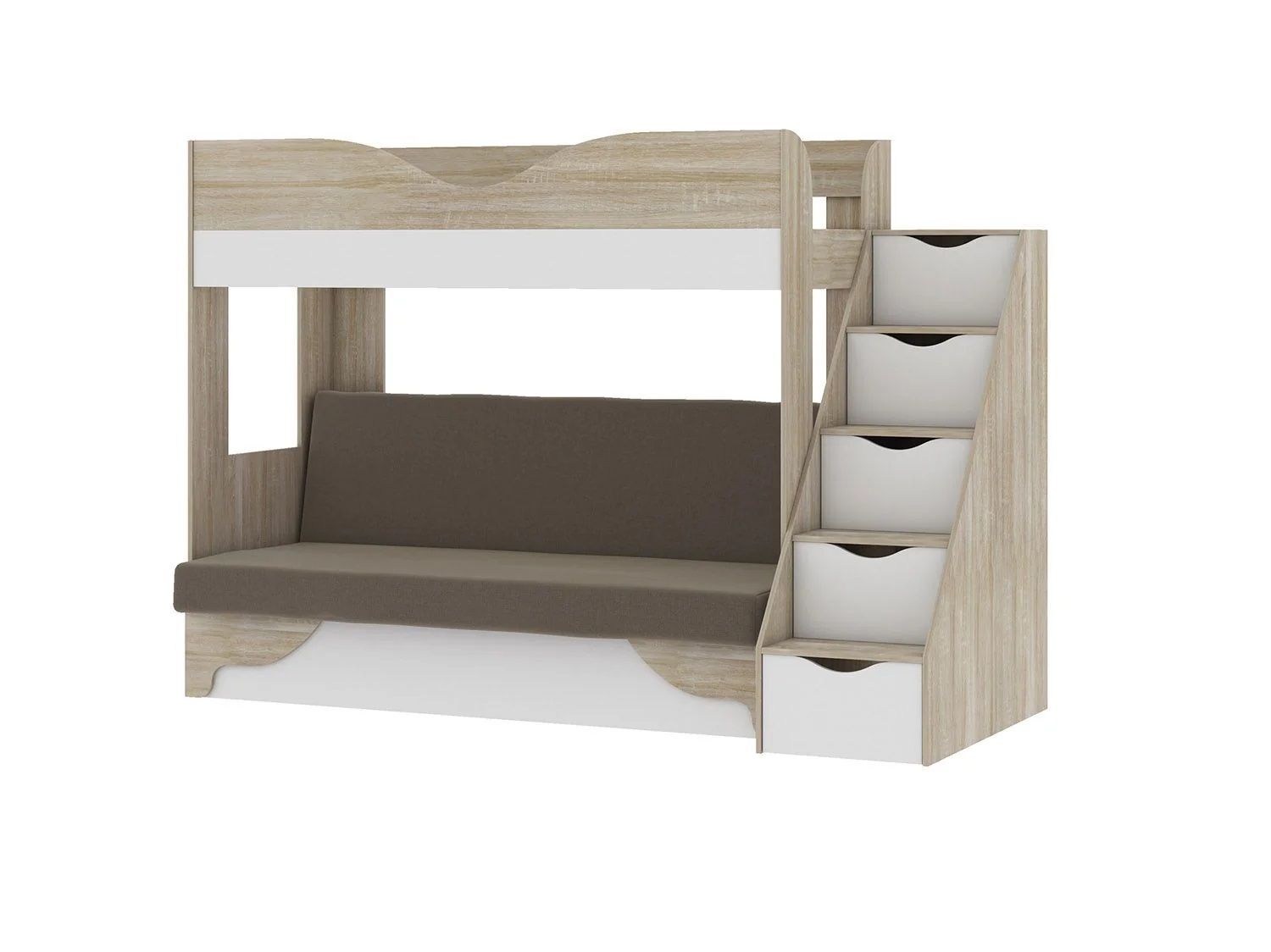 Латте 77-01 кровать-диван Дуб сонома / Аляска / Велюр Коричневый - готовое решение для двух спальных мест в детской комнате.