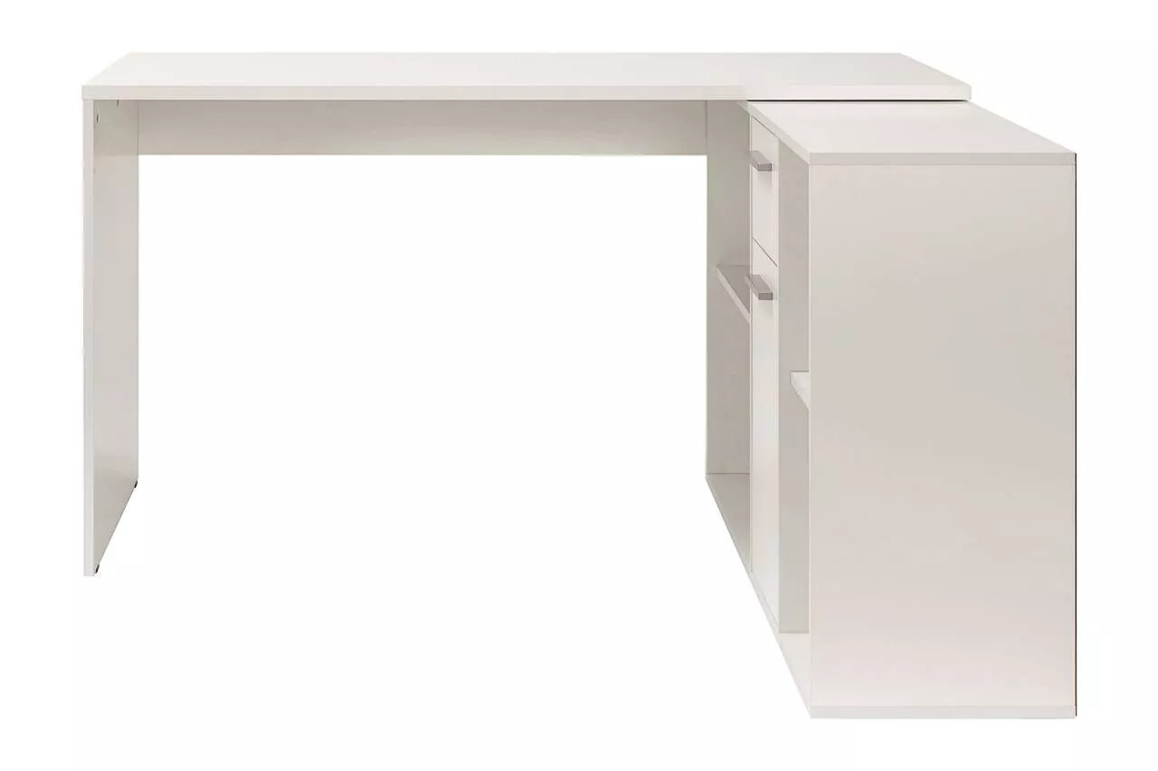 Классический белый стол гармонично вольется в интерьер комнаты и при этом не займет много места. Широкая столешница позволит свободно разместить ноутбук, настольную лампу и письменные принадлежности. Система хранения стола состоит из тумбы с четырьмя открытыми нишами разного размера, одного закрытого шкафчика с полкой внутри и выдвижного ящика. Благодаря такой конструкции, на рабочем месте легко поддерживать порядок и все необходимое всегда будет под рукой.