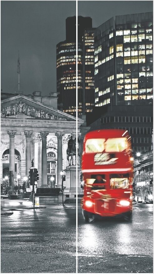 Шкаф имеет три отделения с полками и штангами для вешалок. Цветовое исполнение: дуб стирлинг, дуб бонифаций. Профиль дверной - матовый хром. Плитные материалы: ЛДСП, стекло с фотопечатью.