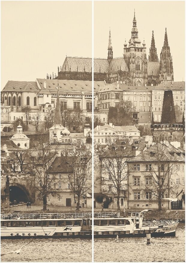 Шкаф имеет три отделения с полками и штангами для вешалок. Цветовое исполнение: дуб стирлинг, дуб бонифаций. Профиль дверной - матовый хром. Плитные материалы: ЛДСП, стекло с фотопечатью.