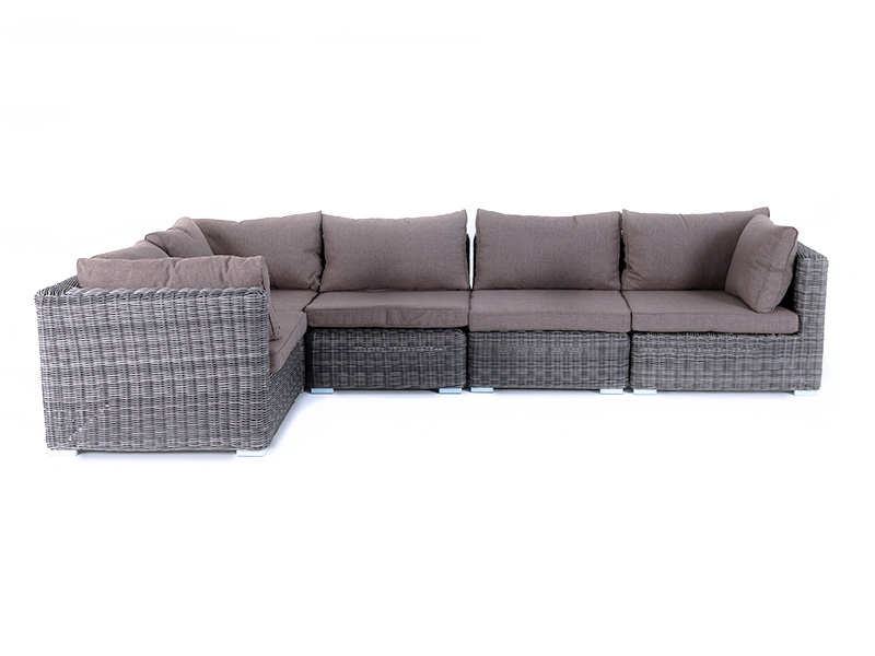 Диван из круглого искусственного ротанга «Лунго» графитового цвета состоит из 5 различных модулей: