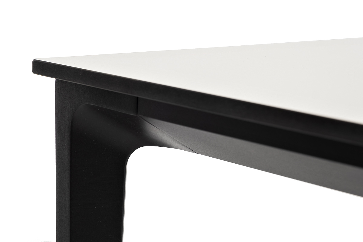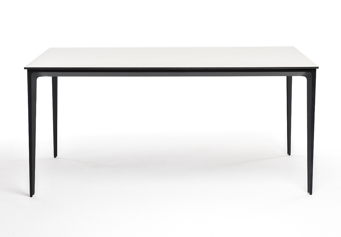 Столешница выполнена из современного высококачественного монолитного компакт-пластик HPL, толщиной 12 мм в молочном цветом. Материал устойчив к высоким температурам, попаданию влаги и может использоваться при любых погодных условиях. Подстолье изготовлено из крашеного алюминия черного цвета.