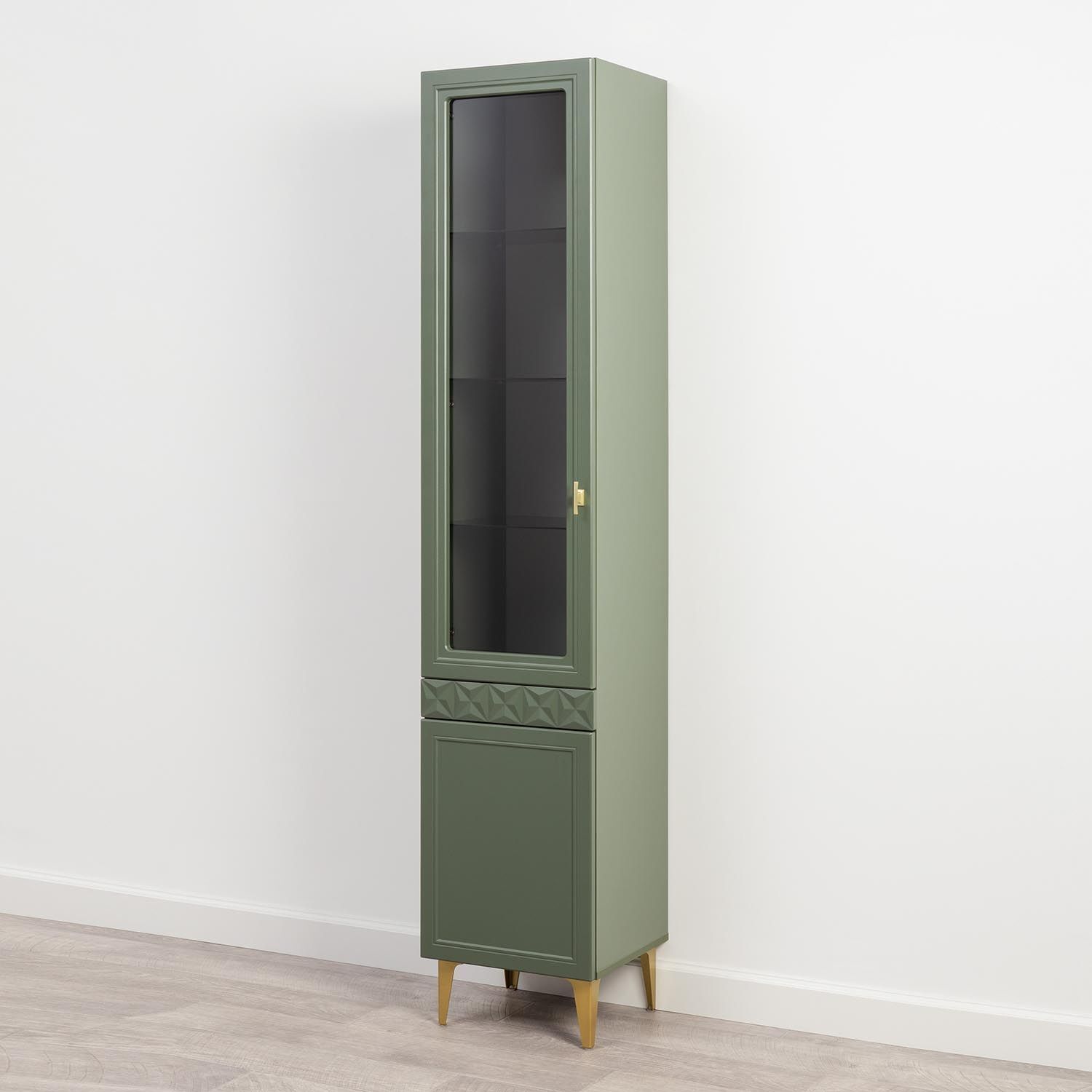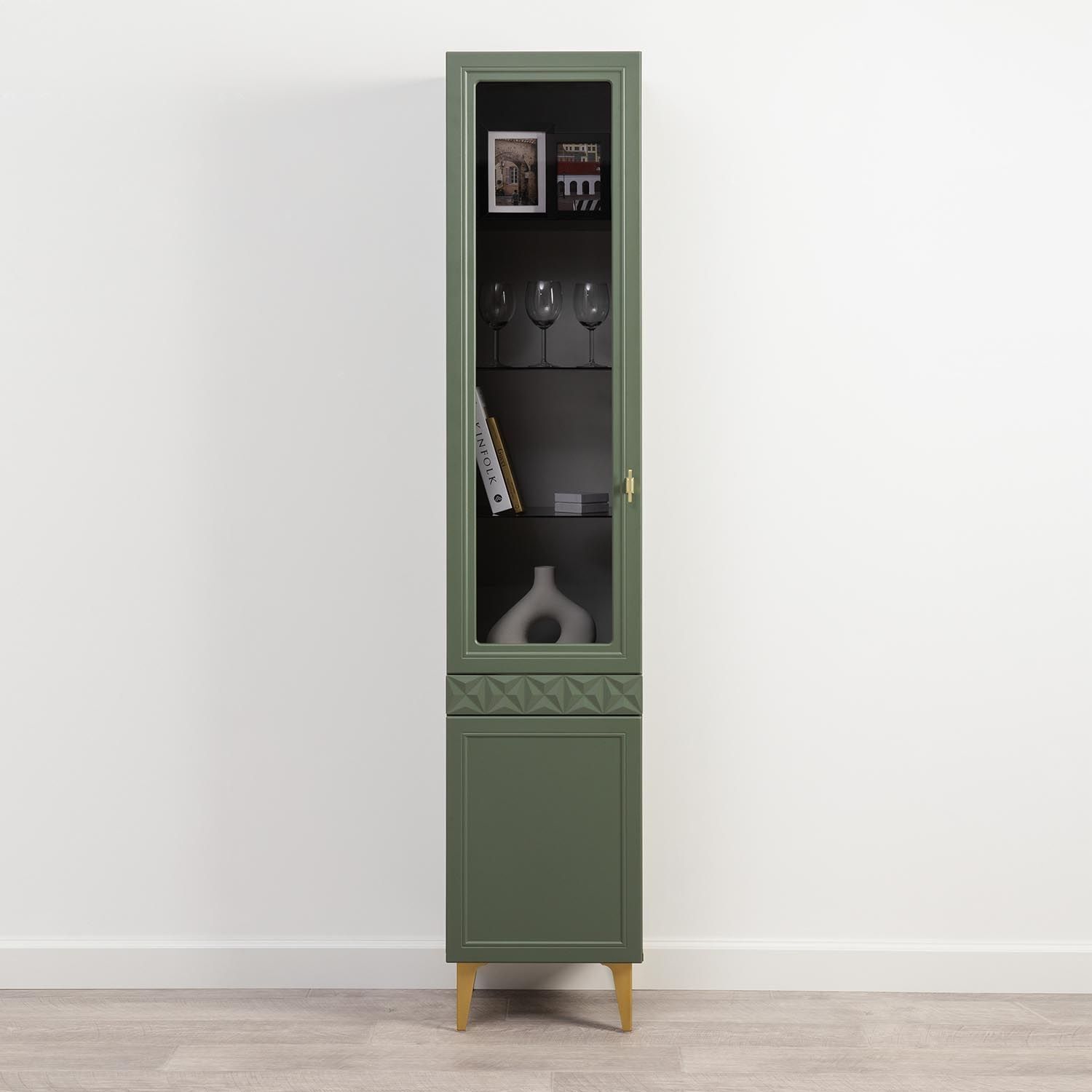 Марион шкаф-витрина 16.397.01 Дымчатый зеленый / Олива шагрень создаст яркое место для хранения вещей.