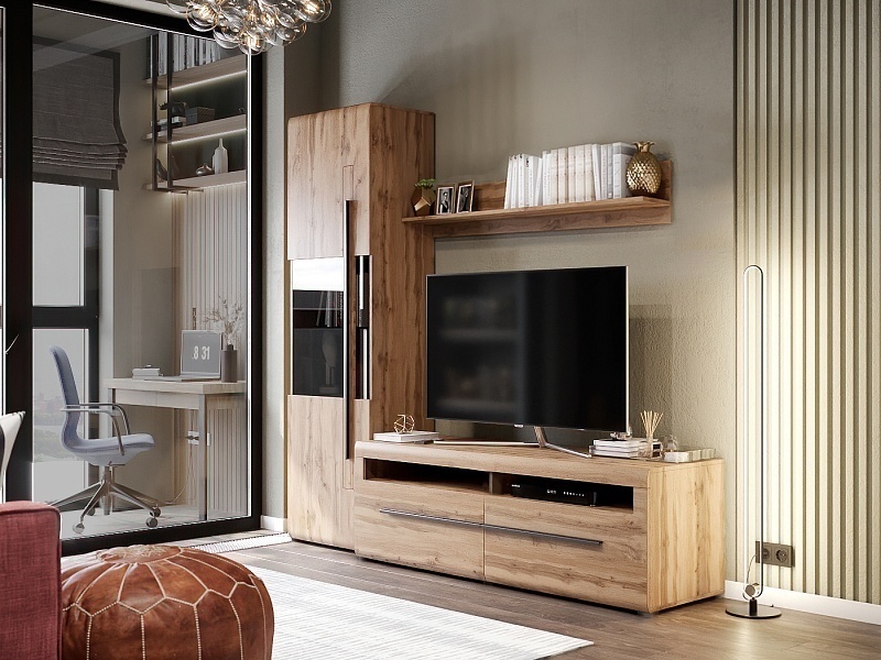 тумба под ТВ, полка навесная, шкаф-витрина однодверный, шкаф-витрина двухверный