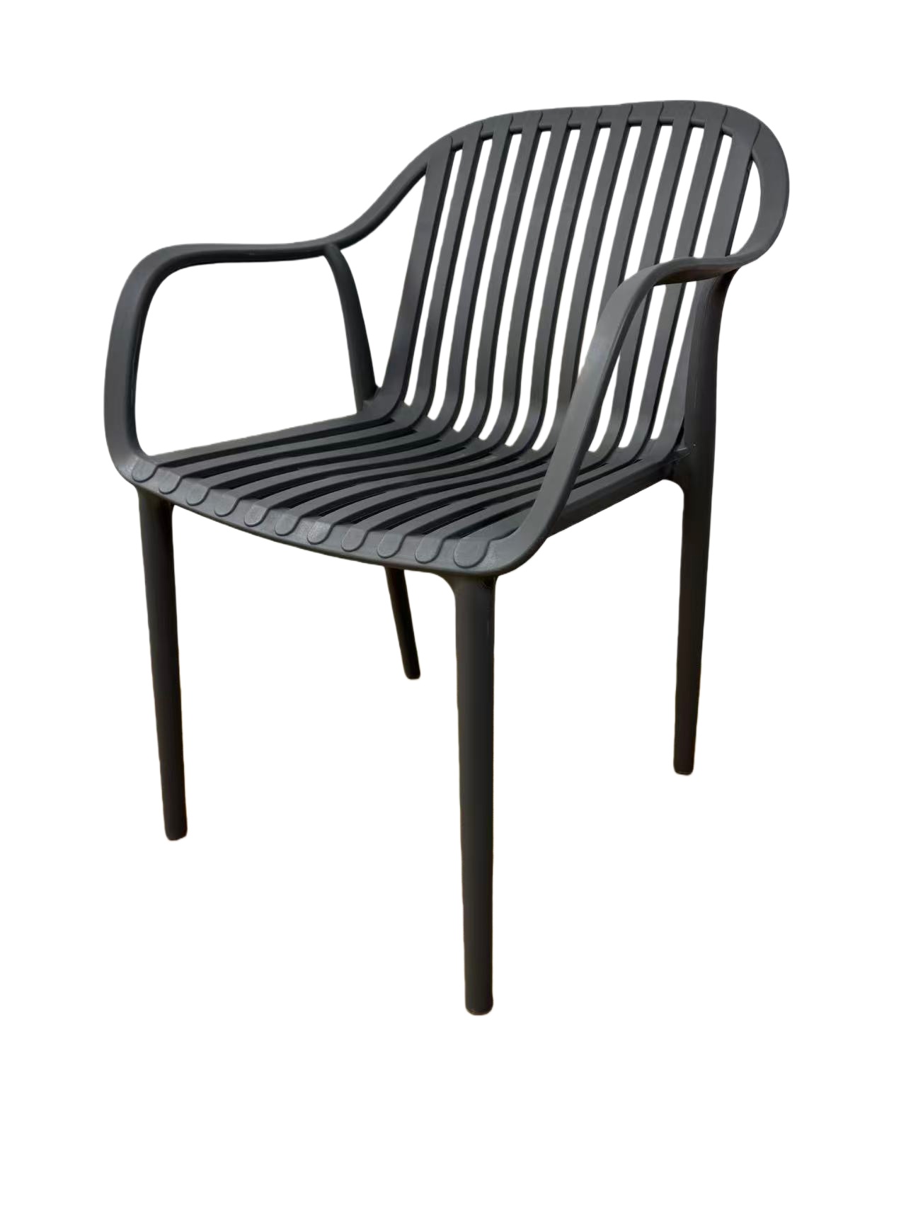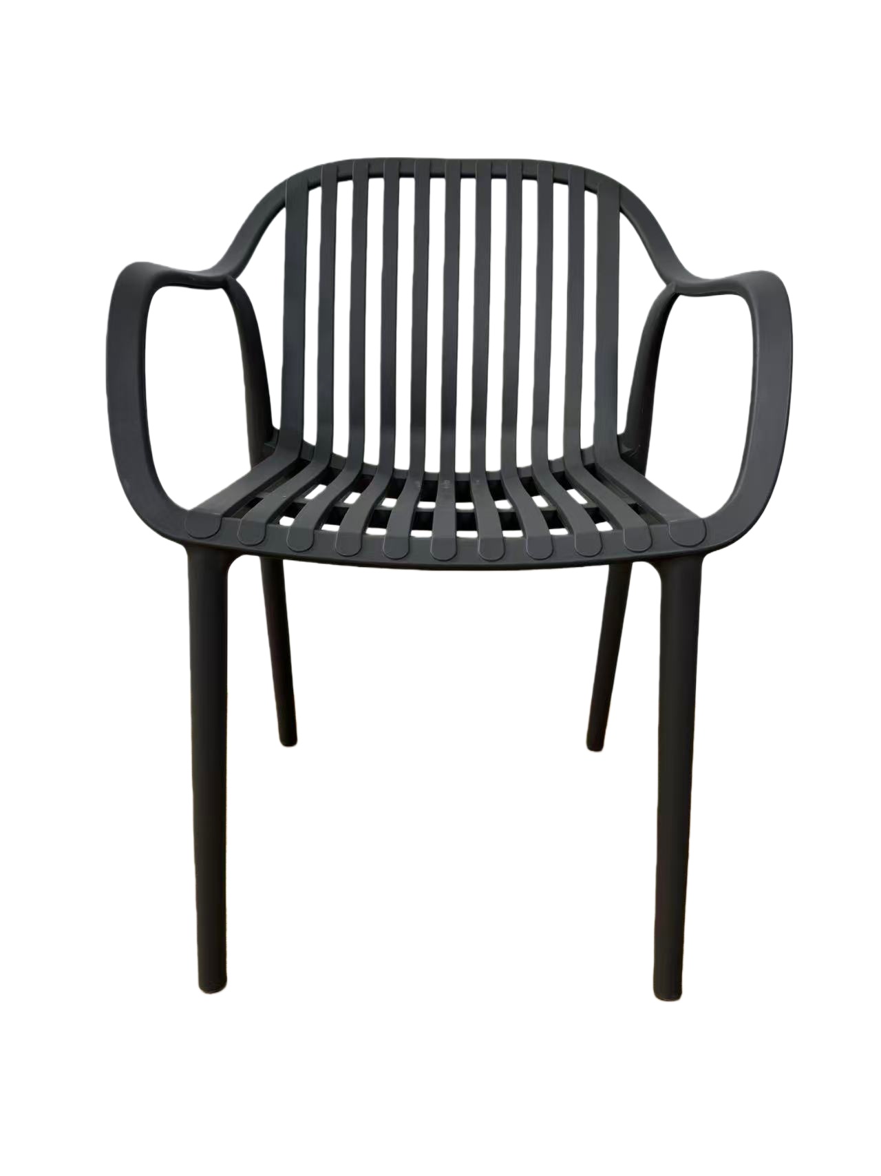 Изготовлен из полипропилена, прочного и стойкого пластика, устойчивого к УФ-излучению, благодаря этому стул сохраняет свой первоначальный вид и не выцветает на солнце даже несмотря на активную эксплуатацию. Цвет - темно-серый.