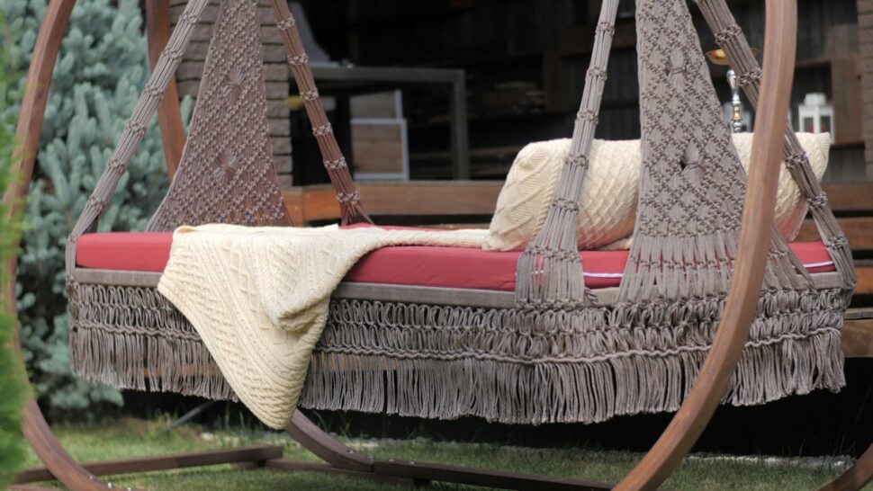 Подвесные качели МАРРАКЕШ допускает различные варианты крепления, могут фиксироваться к потолку посредством креплений или устанавливаться на надежный деревянный каркас. Качели кровать МАРРАКЕШ созданы для двоих, достаточно просторные и имеет солидный запас прочности – каркас выдерживает вес до 250 кг.