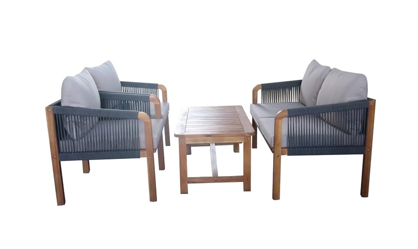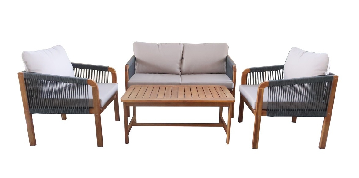 Набор садовой мебели позволяет создать уголок отдыха на загородном участке. Четыре предмета создают функциональный ансамбль в едином стиле. Изготовлен из древесины акации. Материал устойчив к внешним воздействиям, влаге и насекомым — повышенный срок эксплуатации. Легко содержать в чистоте — необходимо периодически протирать влажной тканью. Подходит для использования в саду, на открытой веранде или у бассейна.