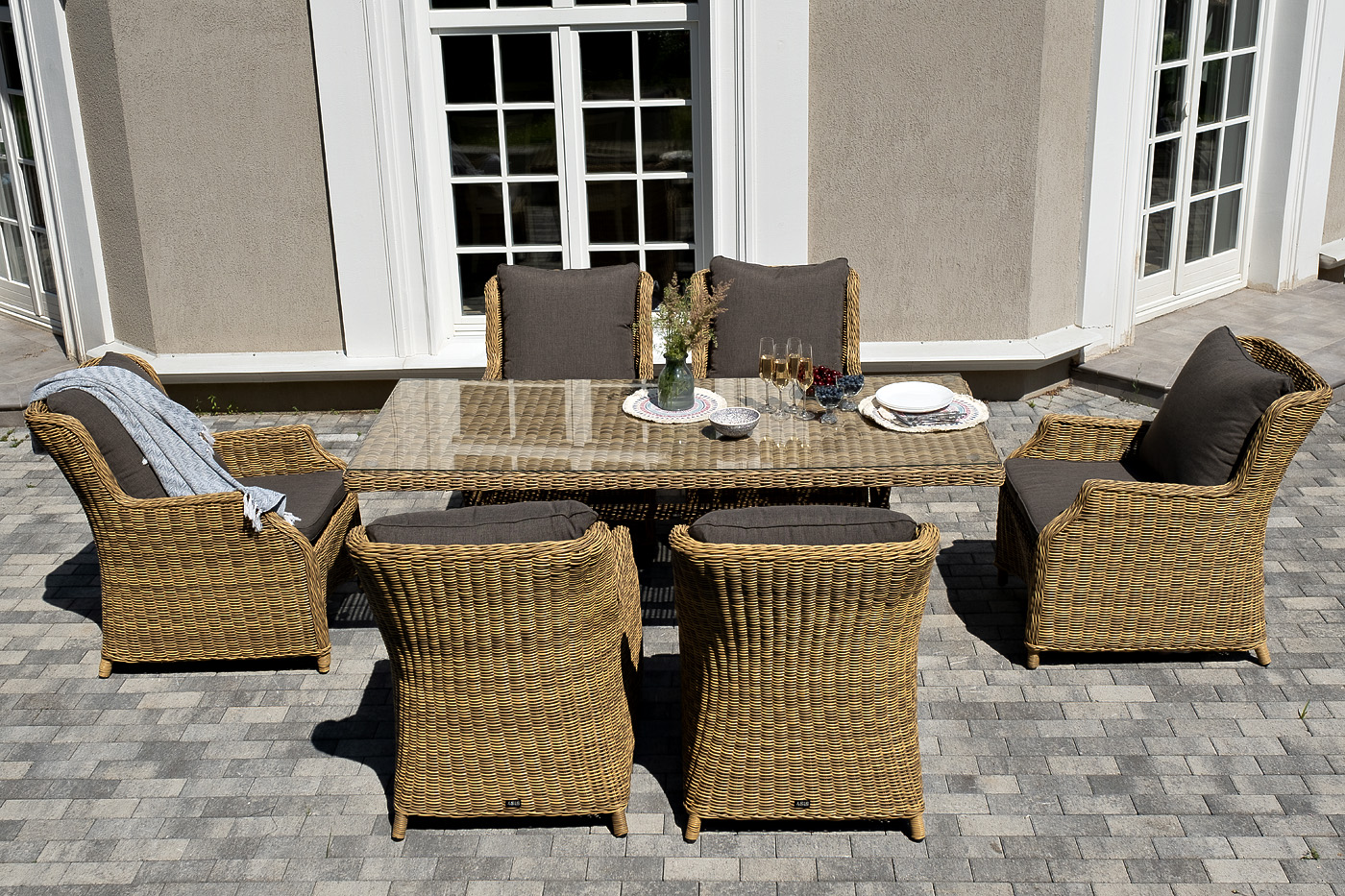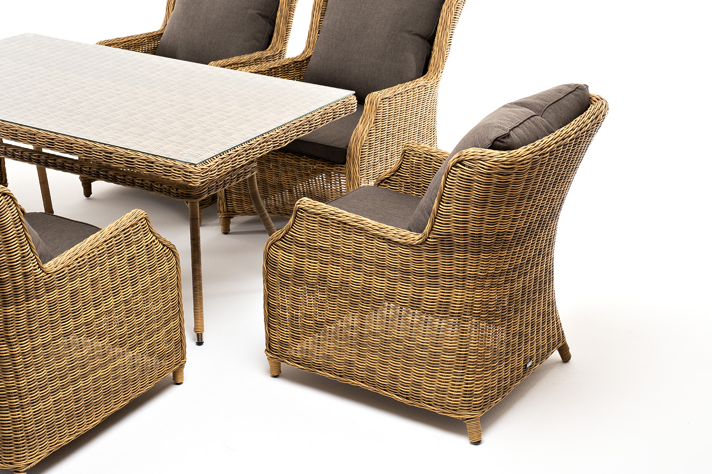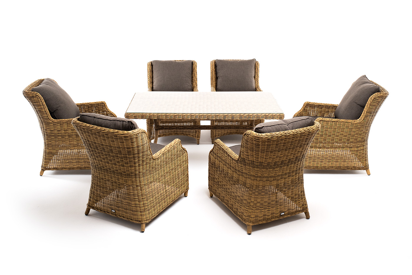 Столешница укомплектована ударопрочным стеклом, толщиной 5 мм. Данное стекло крепится к столу при помощи четырех вакуумных силиконовых присосок и поставляется в собранном виде. Плетеные стулья для удобства использования осна "Латте" плетеный стол из искусственного ротанга 160х90см, цвет соломенный 1шт. 1 600Х900Х750, "Неаполь" плетеный стул из искусственного ротанга, цвет соломенный 6шт. 650Х900Х920,