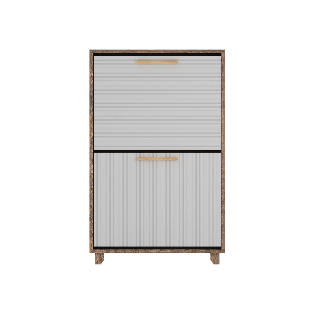 Закрытая обувница имеет 2 отделения для обуви за откидными дверями. В каждом из них есть разделитель.