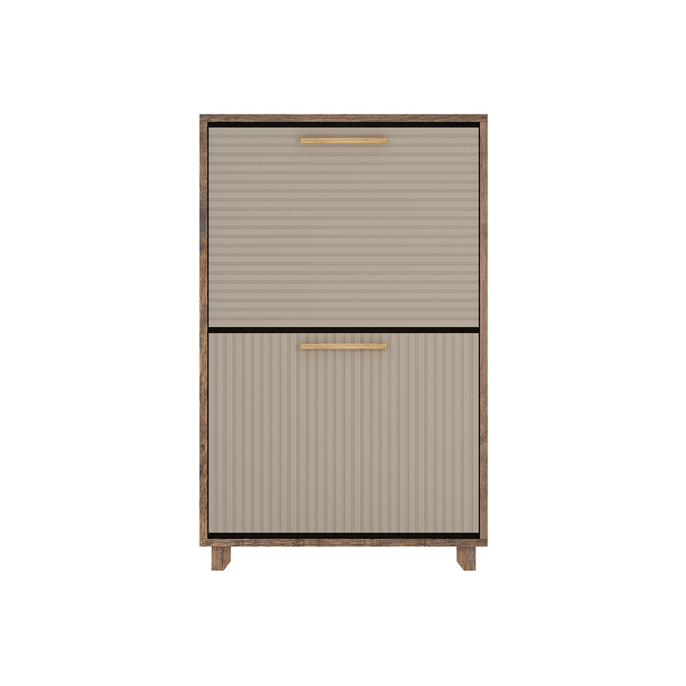 Закрытая обувница имеет 2 отделения для обуви за откидными дверями. В каждом из них есть разделитель.
